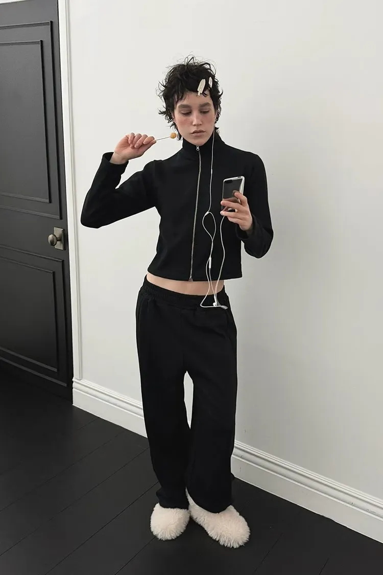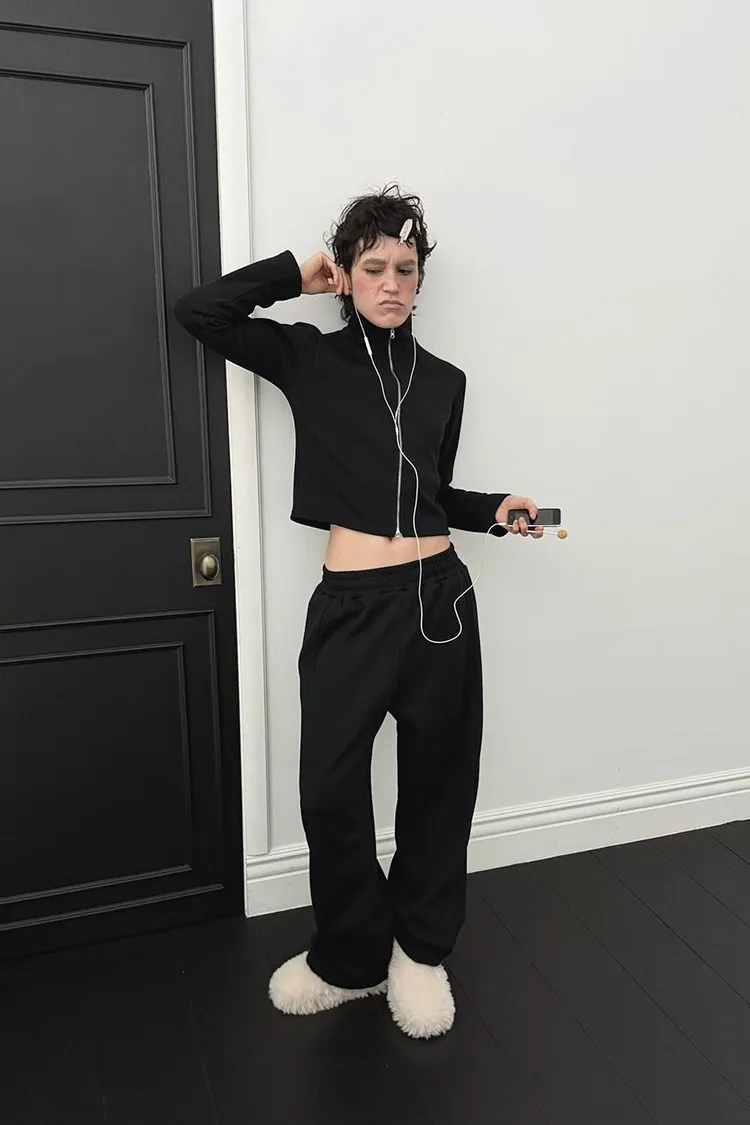 5-12立領內刷毛棉外套+直筒棉褲套裝 512074