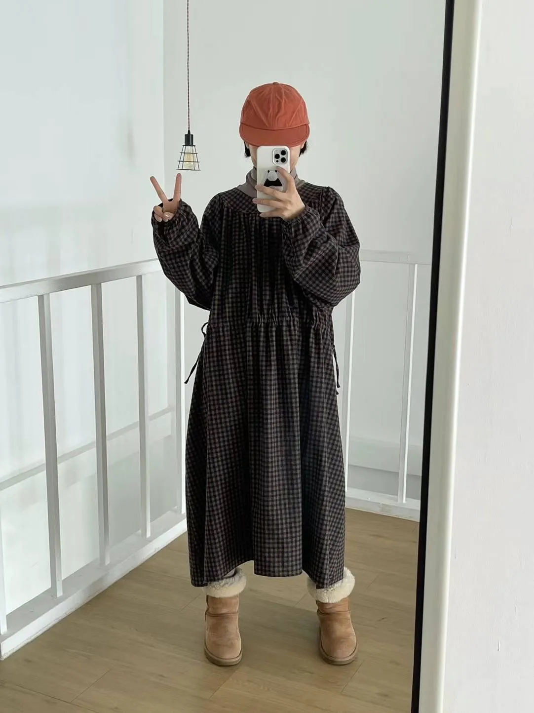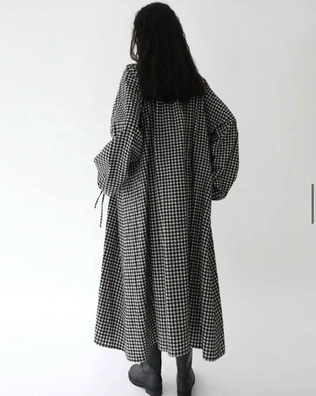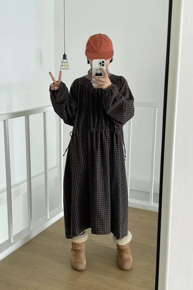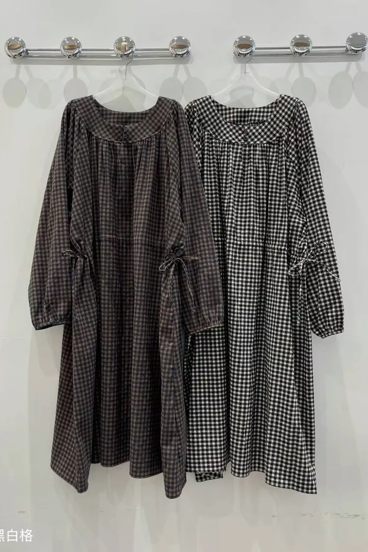 4-2黑白小格法蘭絨縮腰洋裝 512076