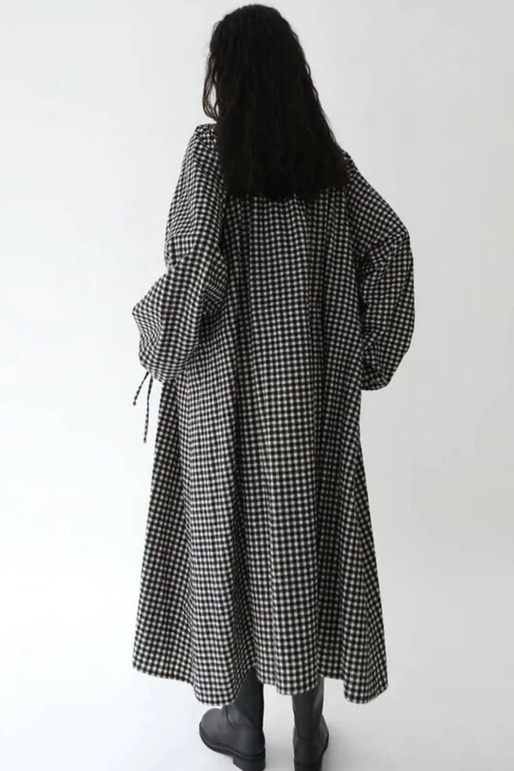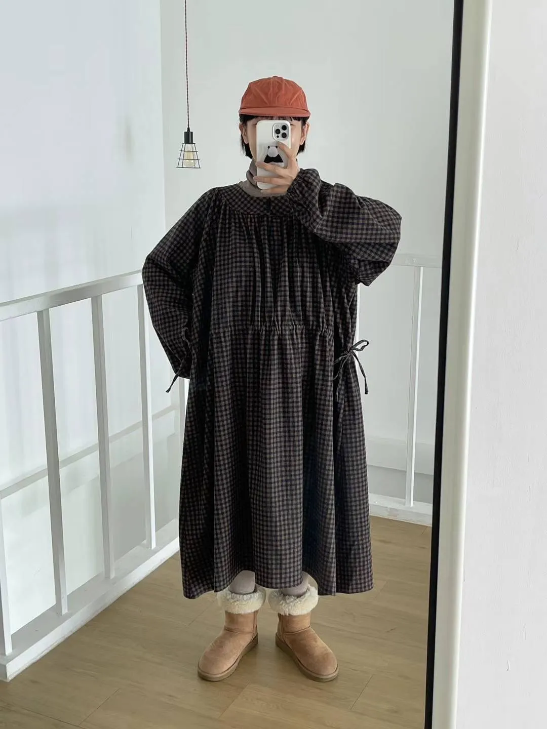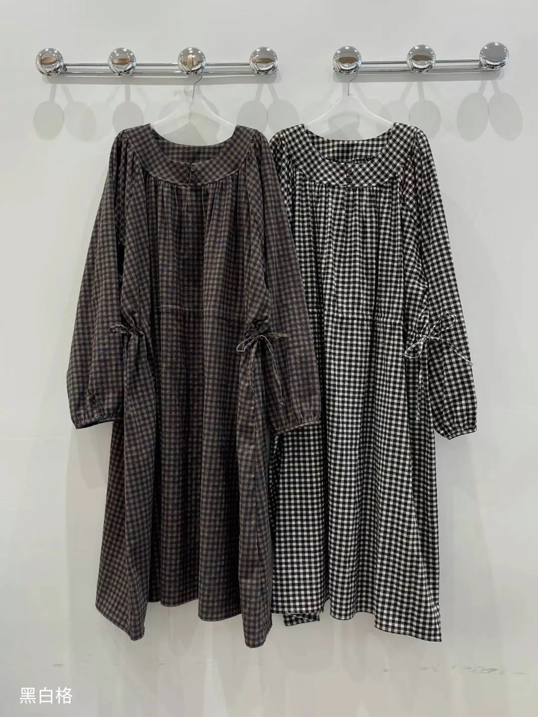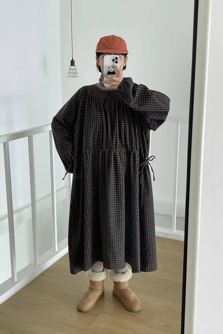 4-2黑白小格法蘭絨縮腰洋裝 512076