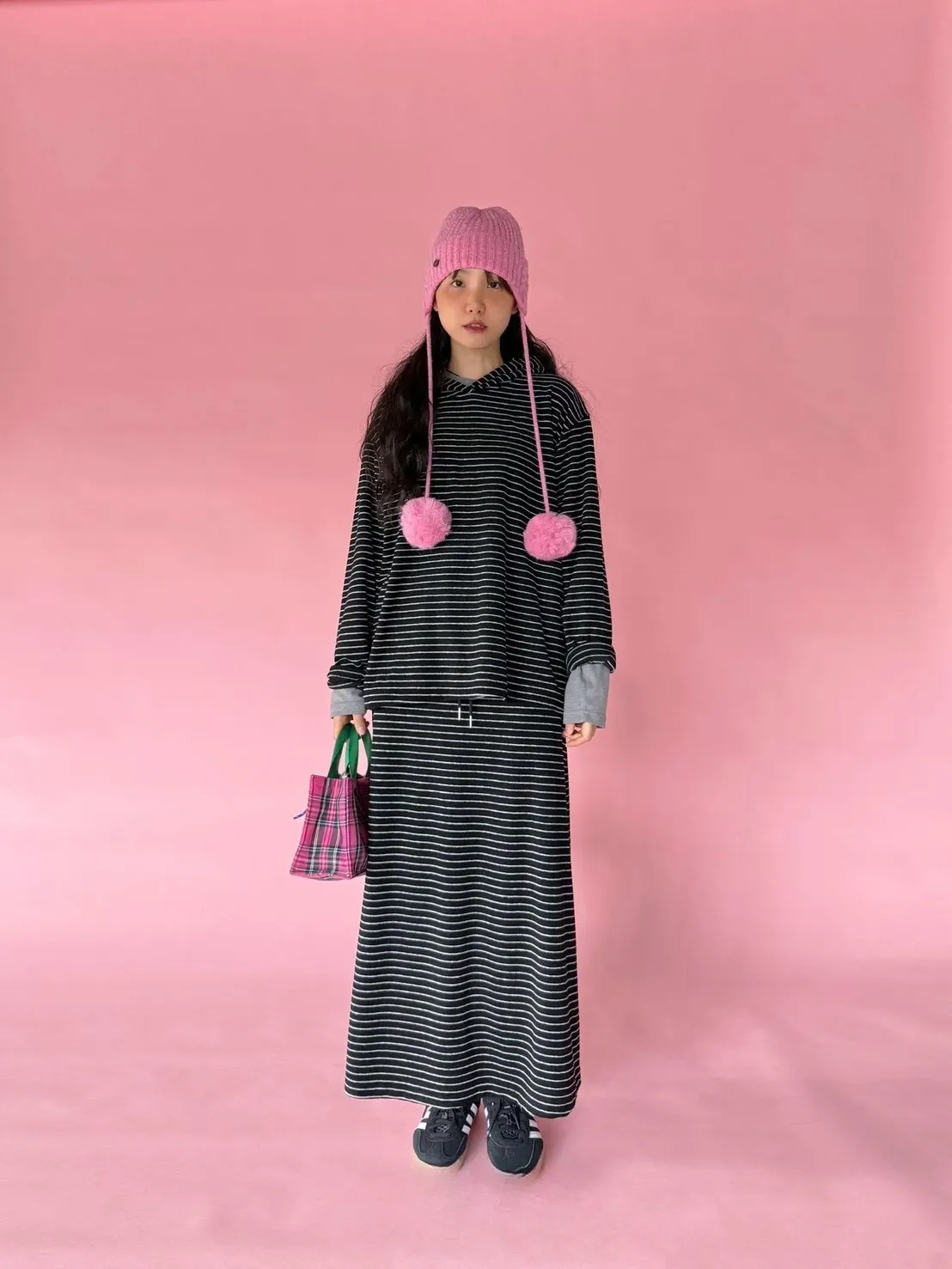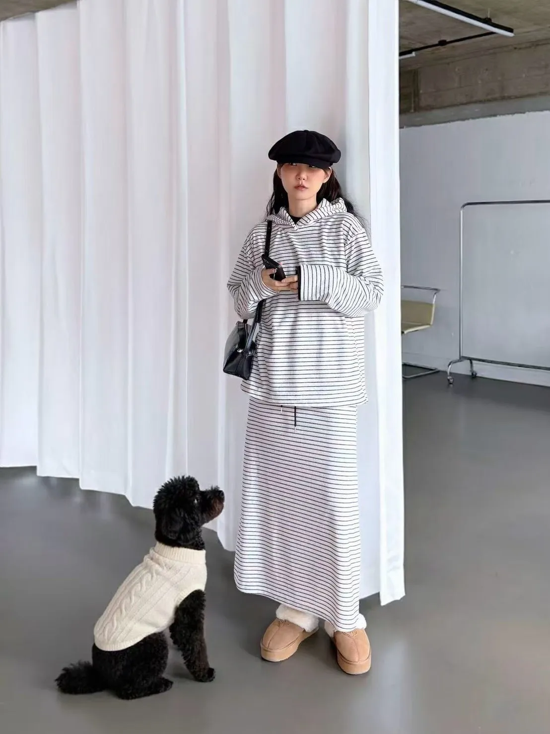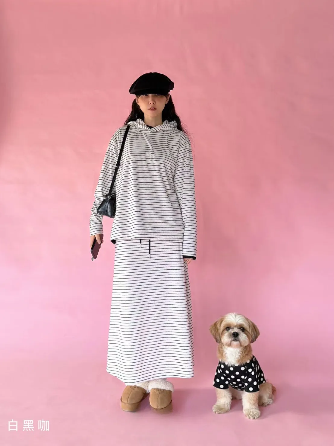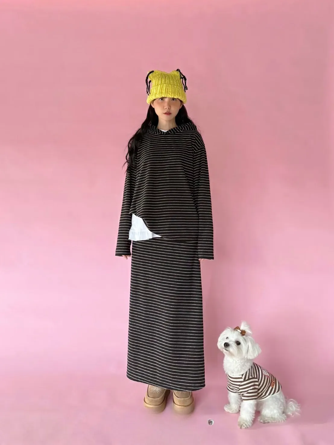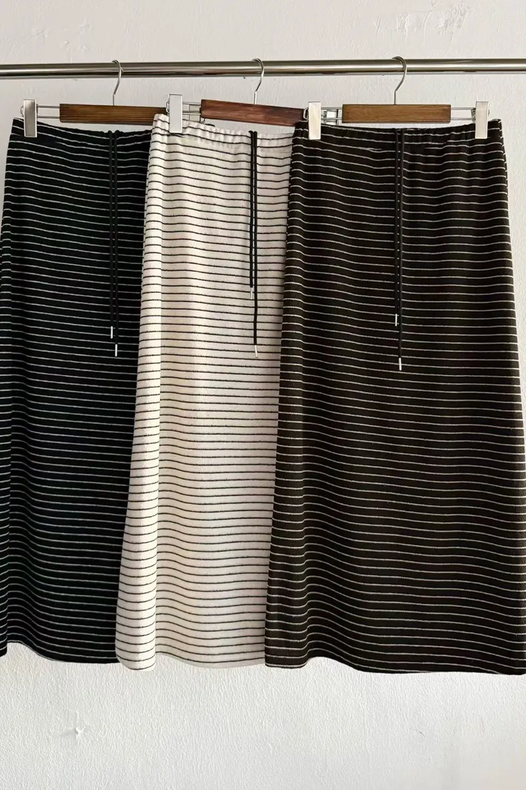 5-12細橫條舒服連帽衣+長裙套裝 512081