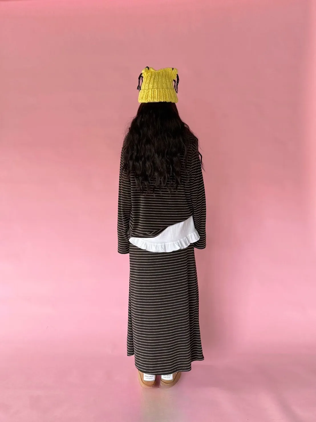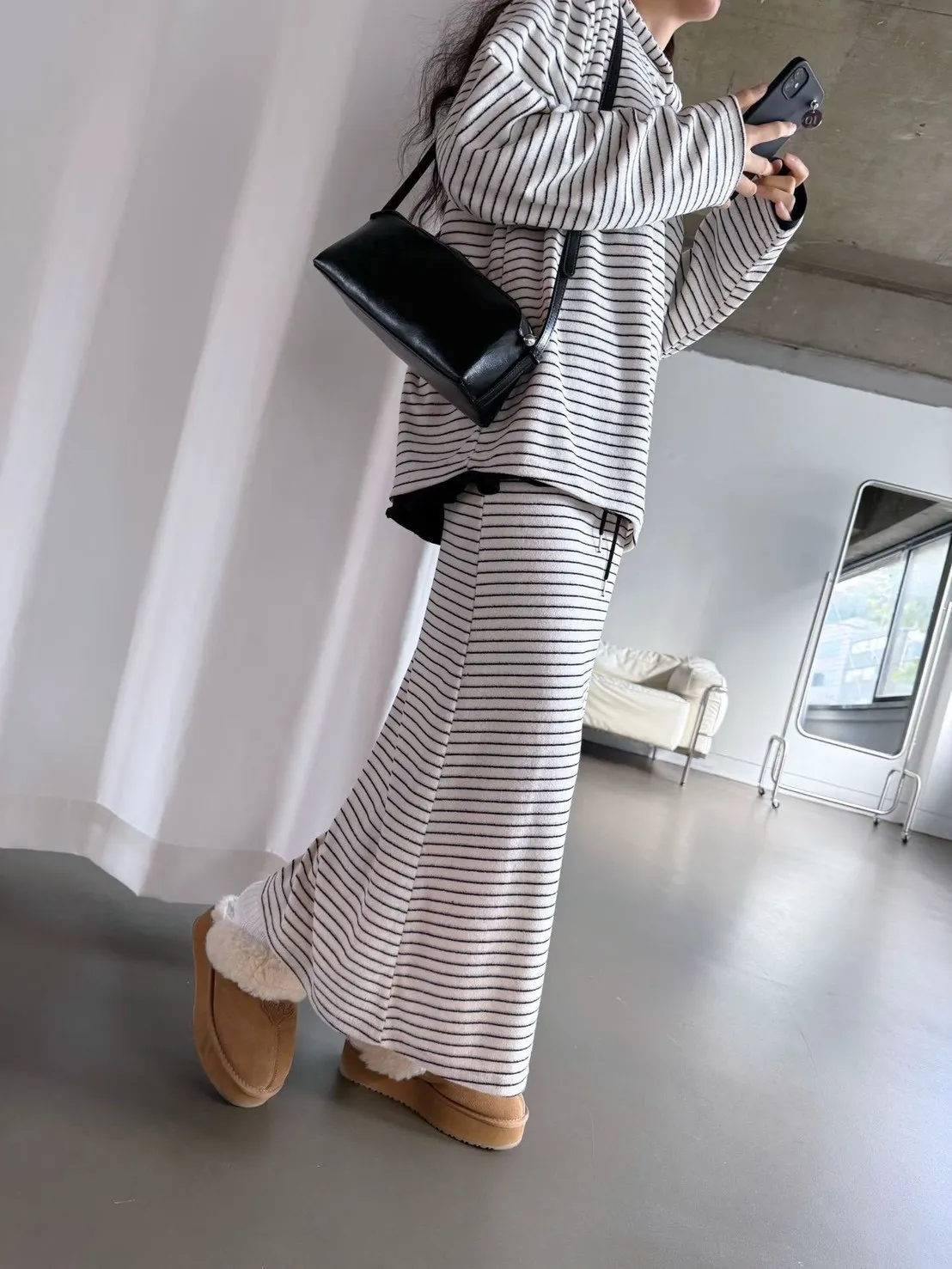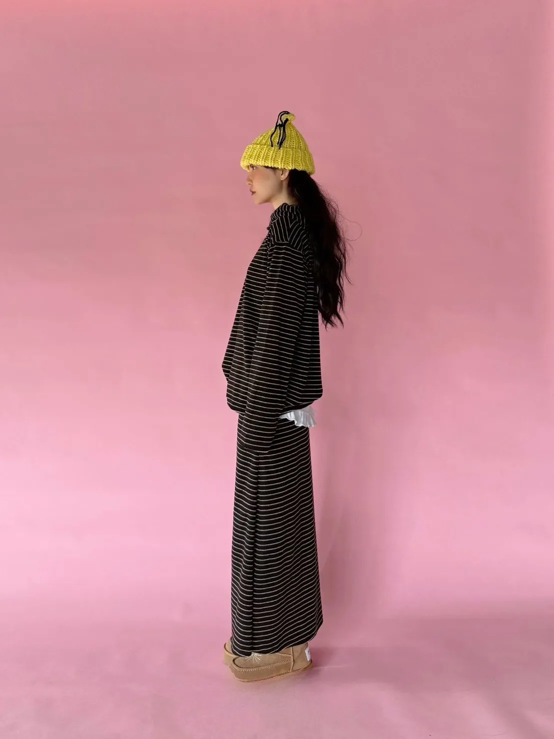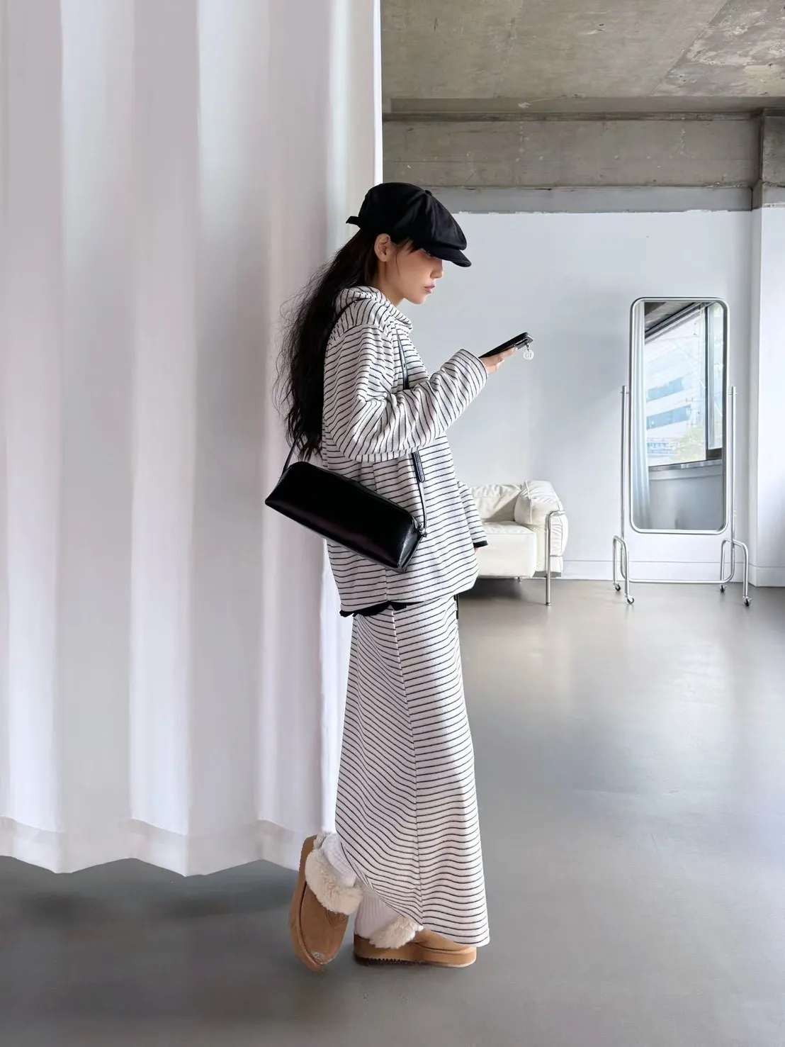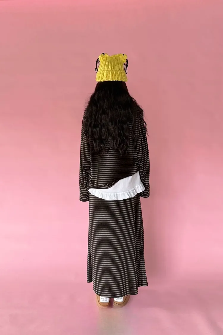 5-12細橫條舒服連帽衣+長裙套裝 512081