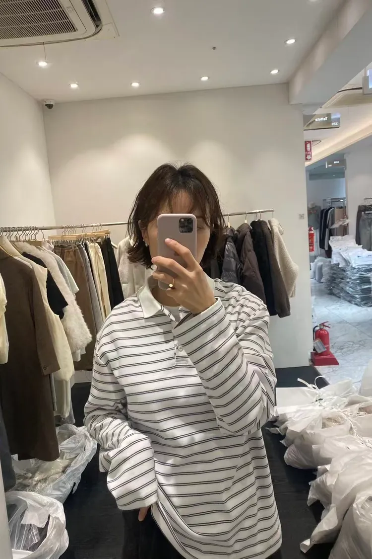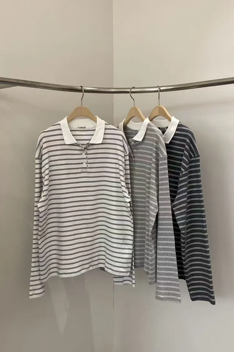 6-1簡單橫條有領上衣