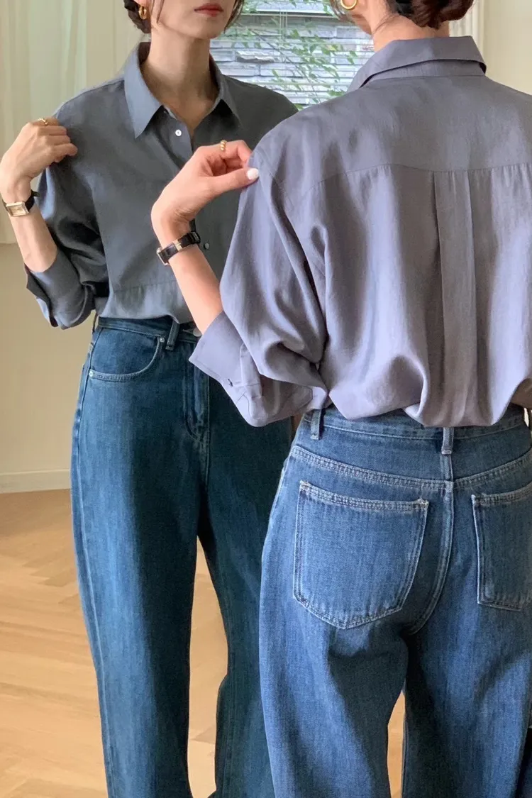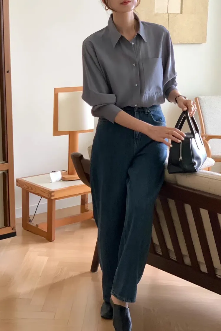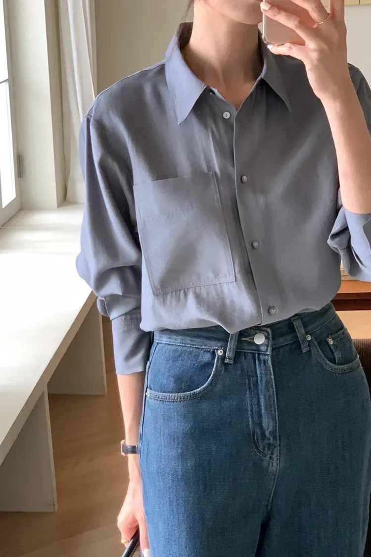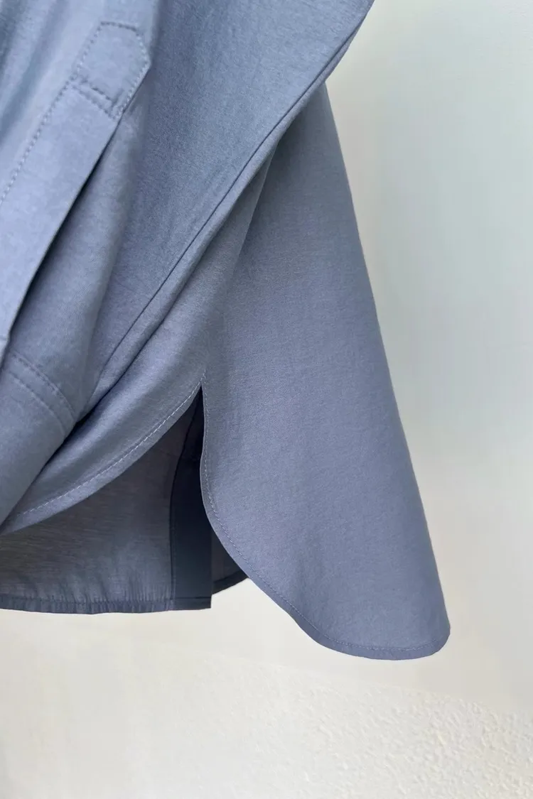 4-9單側口袋滑緞面料襯衫 601014