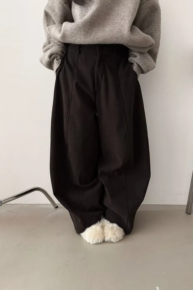 6-1前壓車線燈心絨內鋪貂絨彎月褲