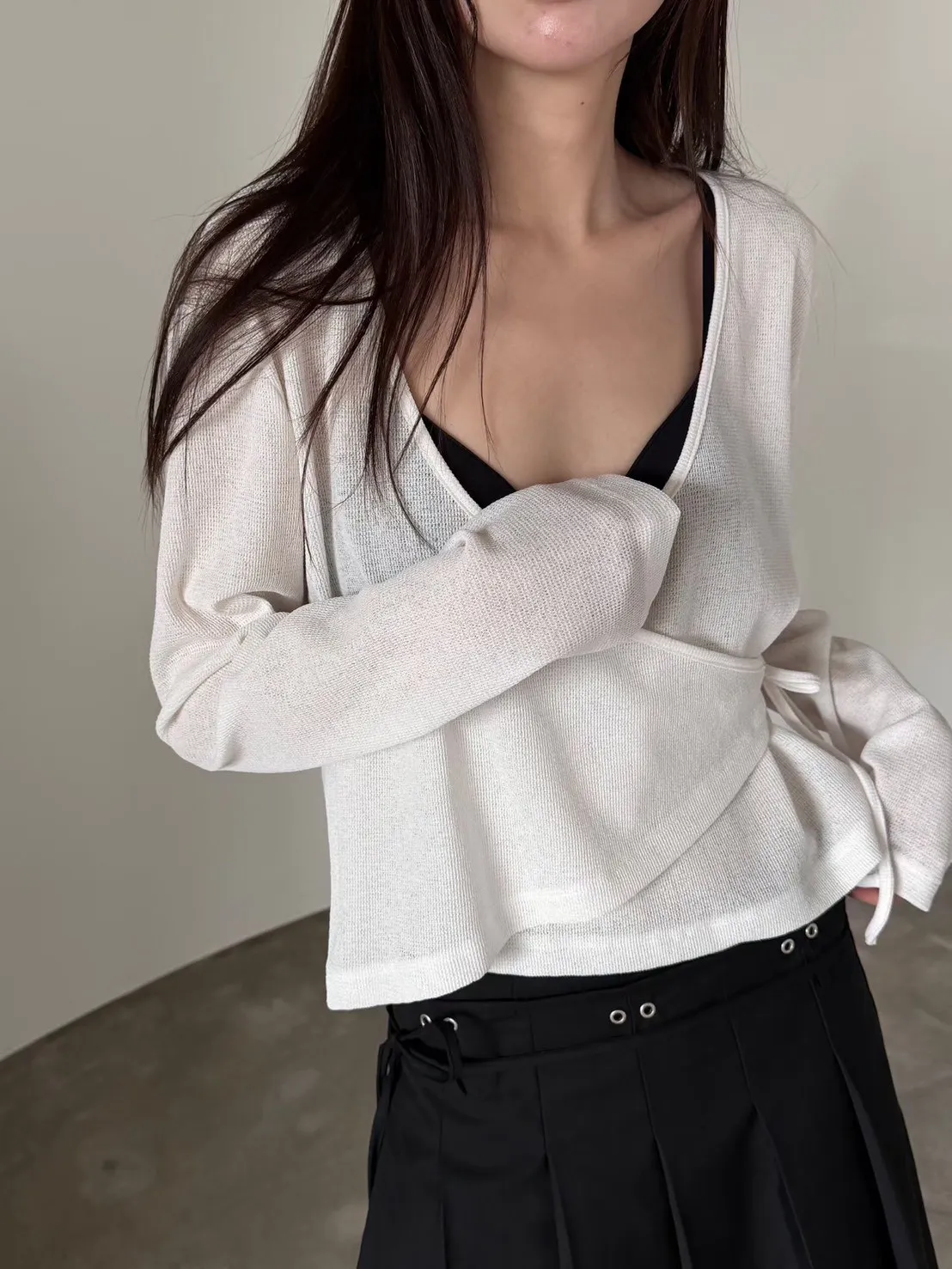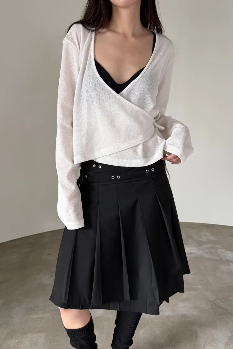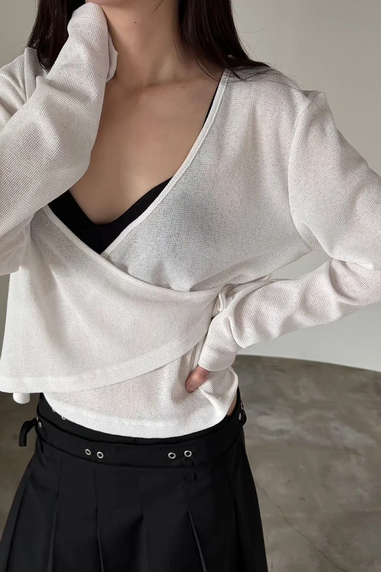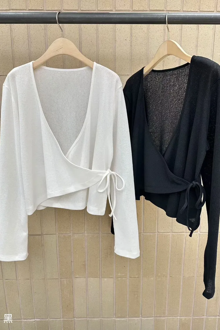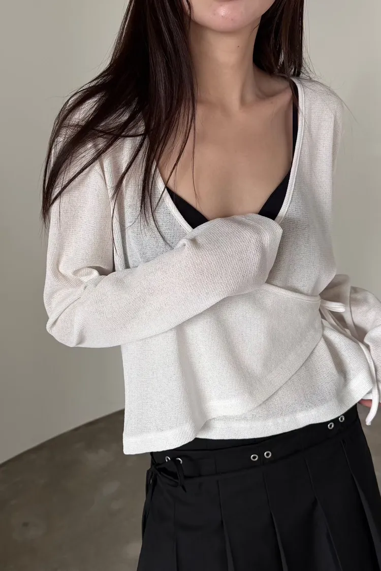 6-3前開V側綁繩混紡罩衫 603011
