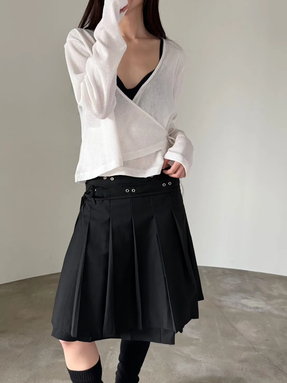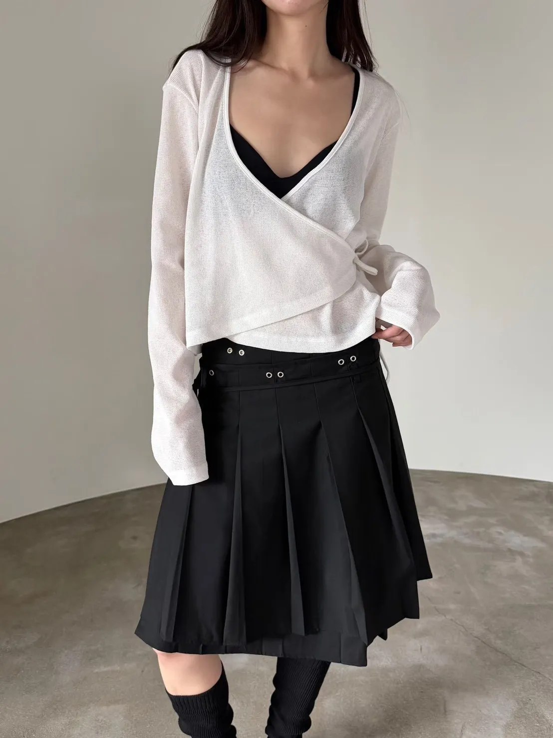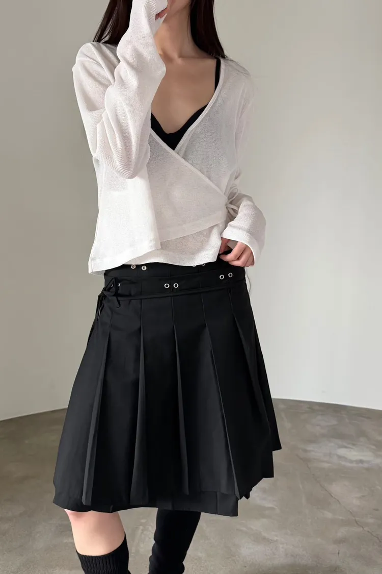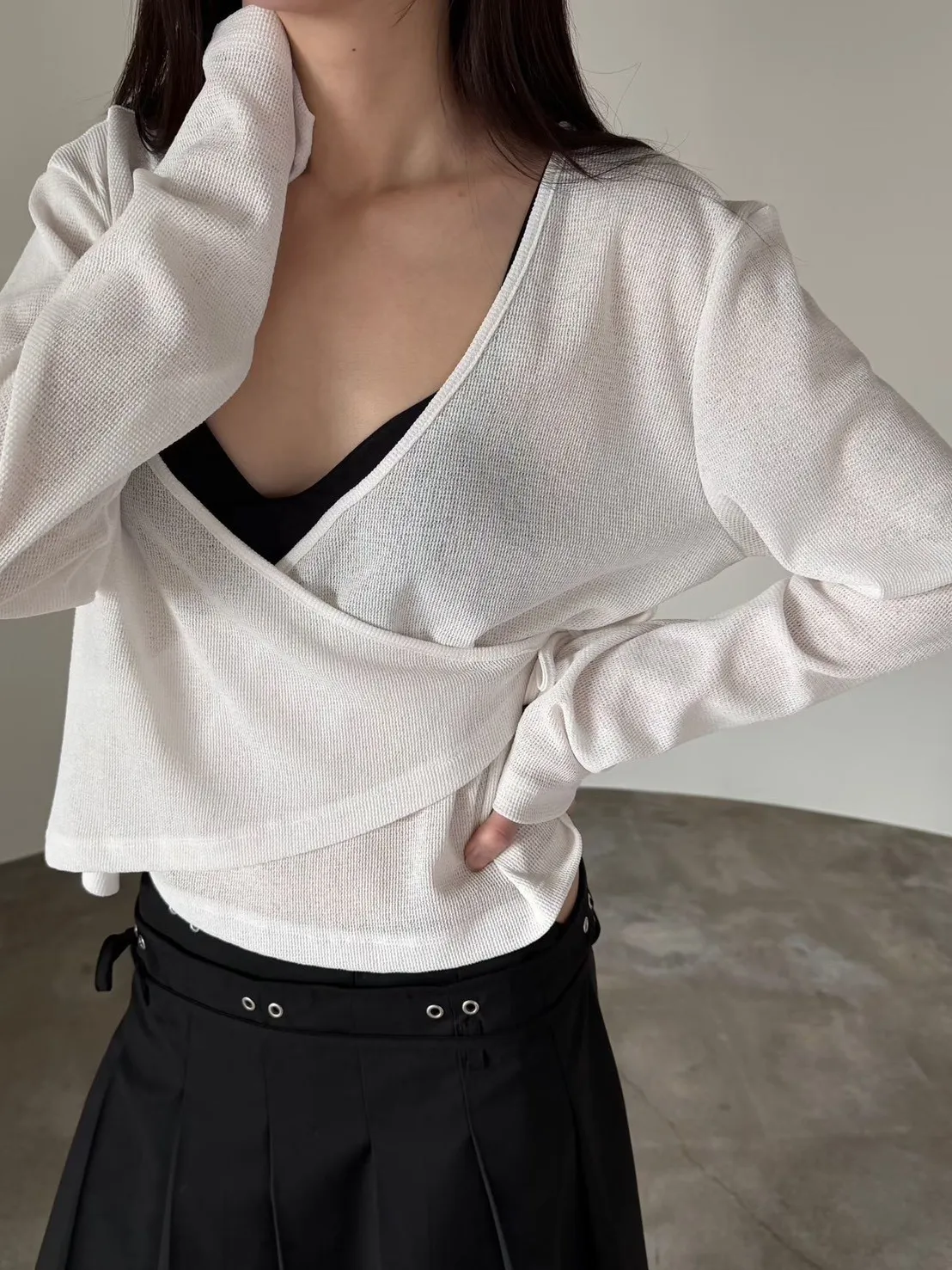 6-3前開V側綁繩混紡罩衫 603011