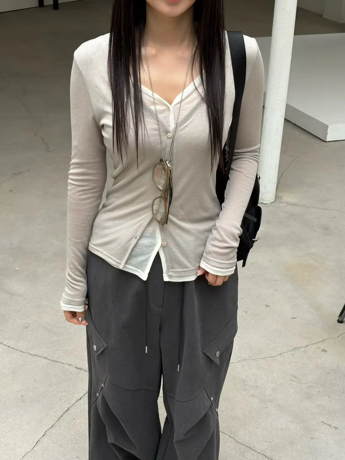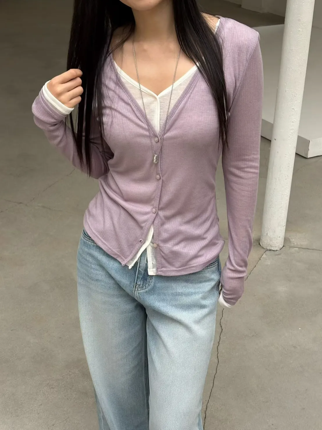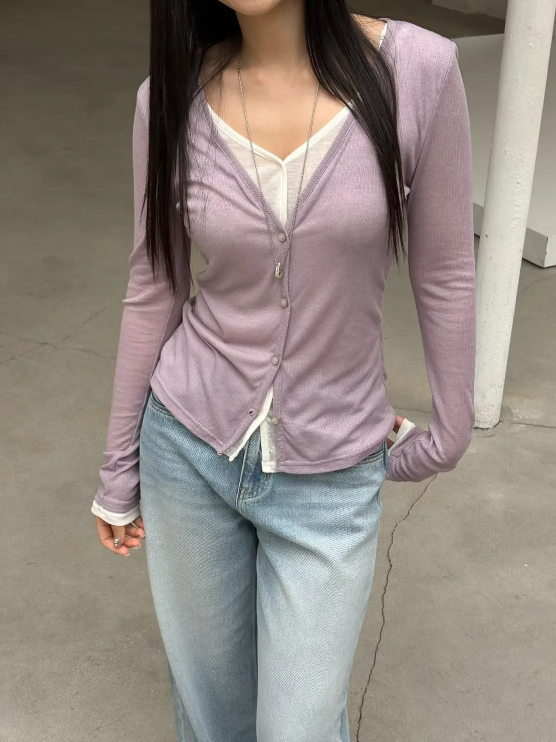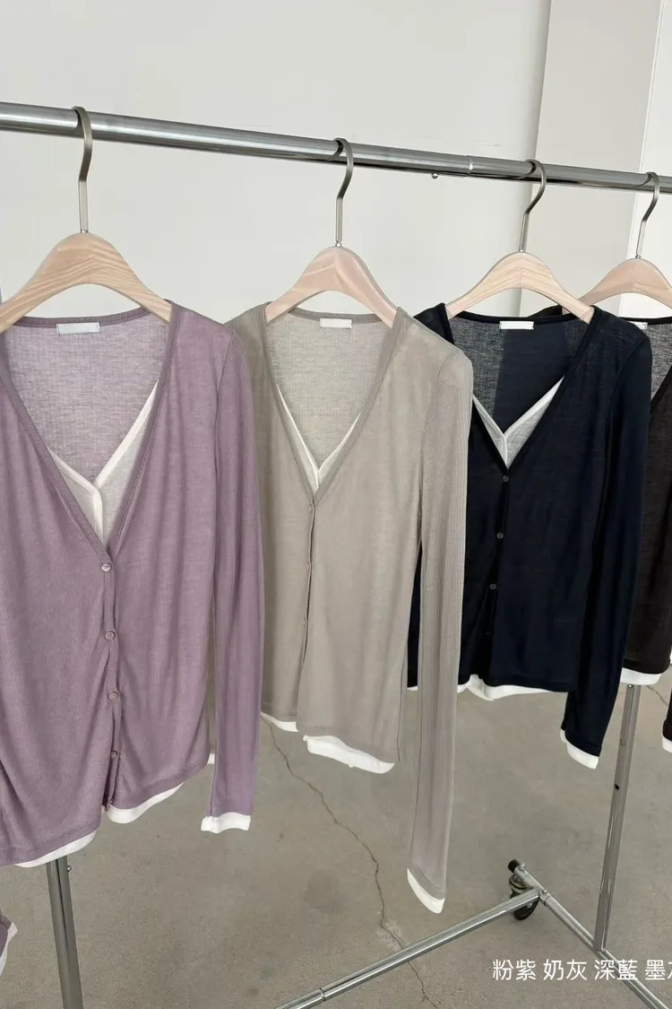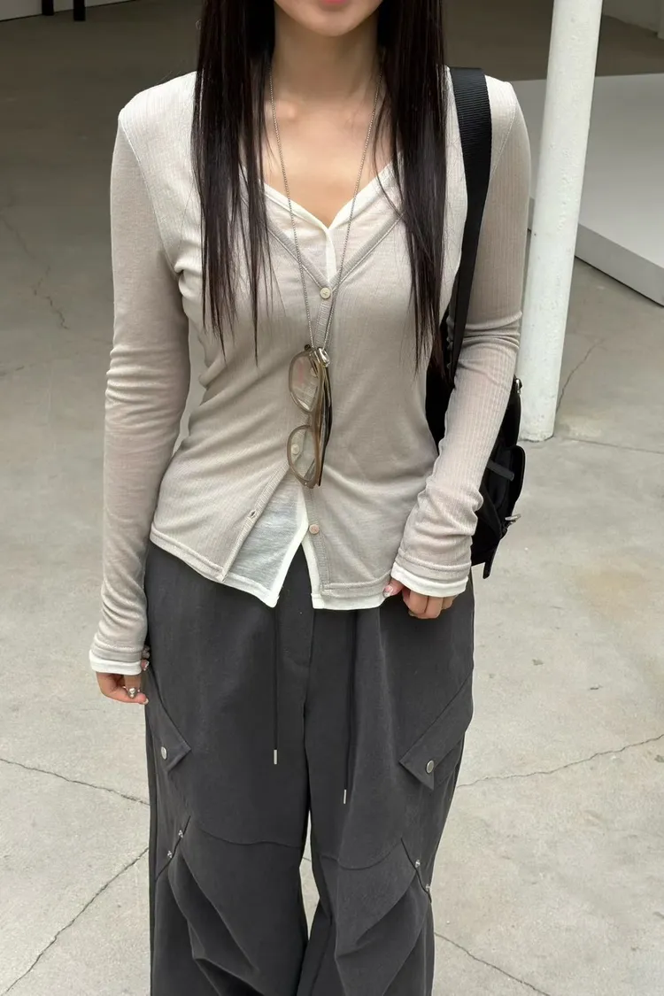 6-3假兩件式疊穿感薄棉上衣 603015