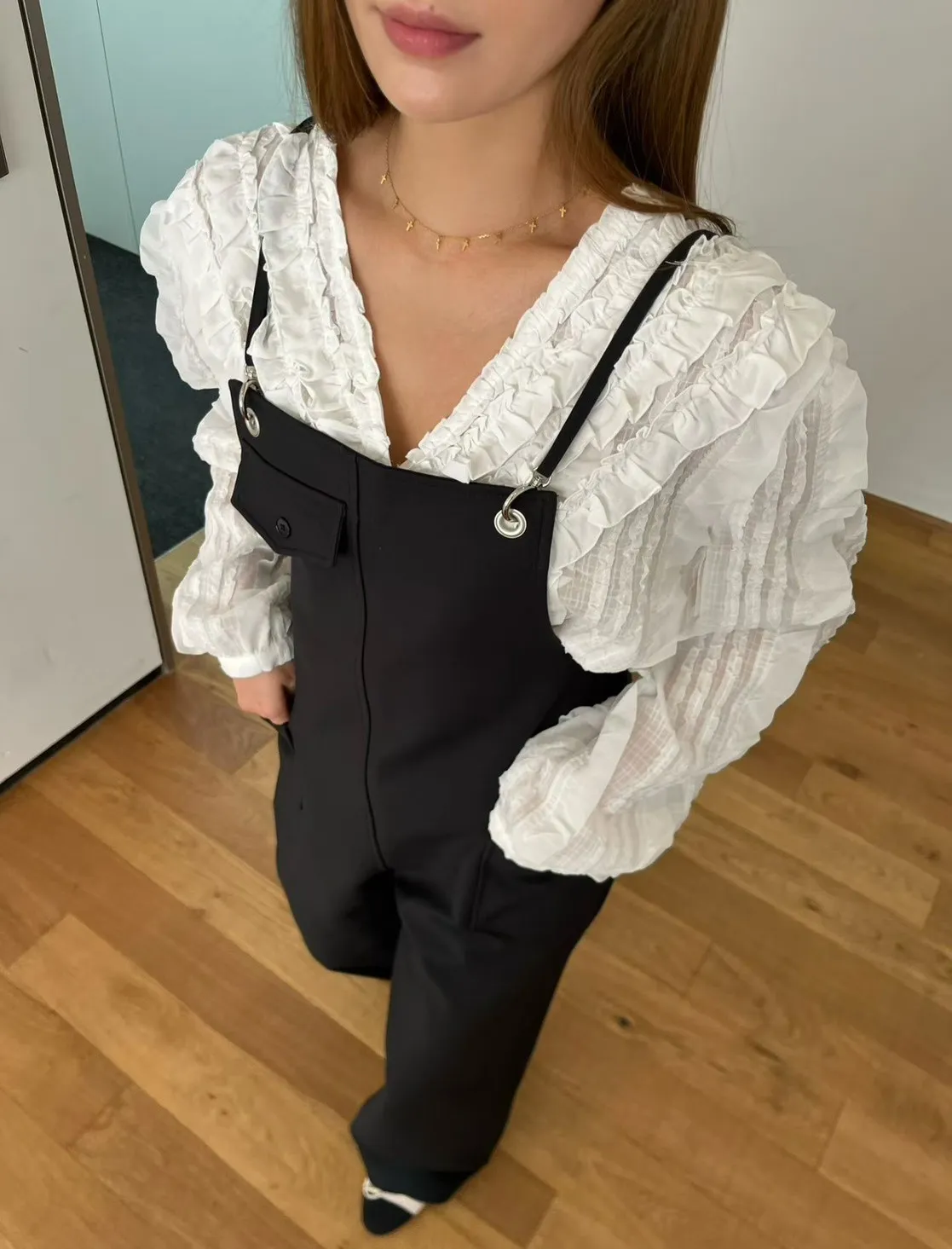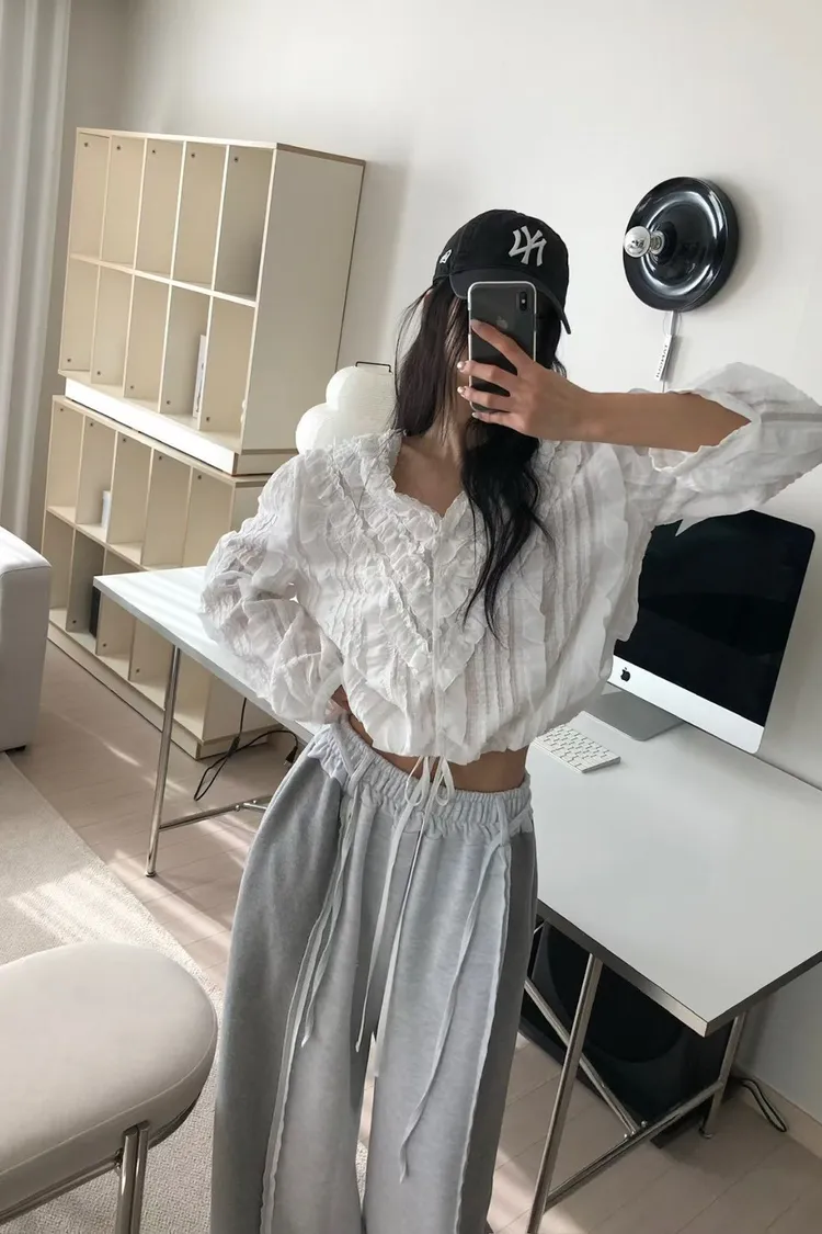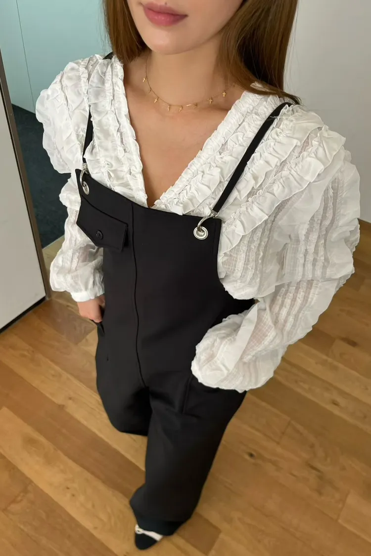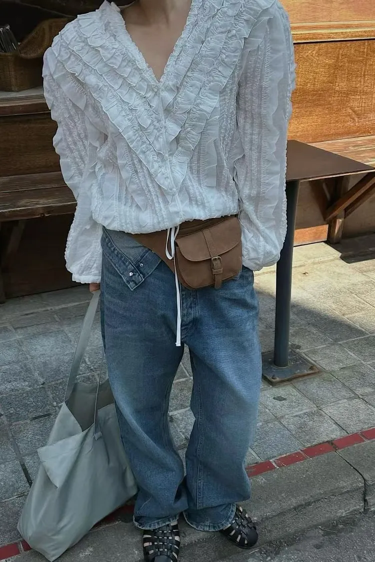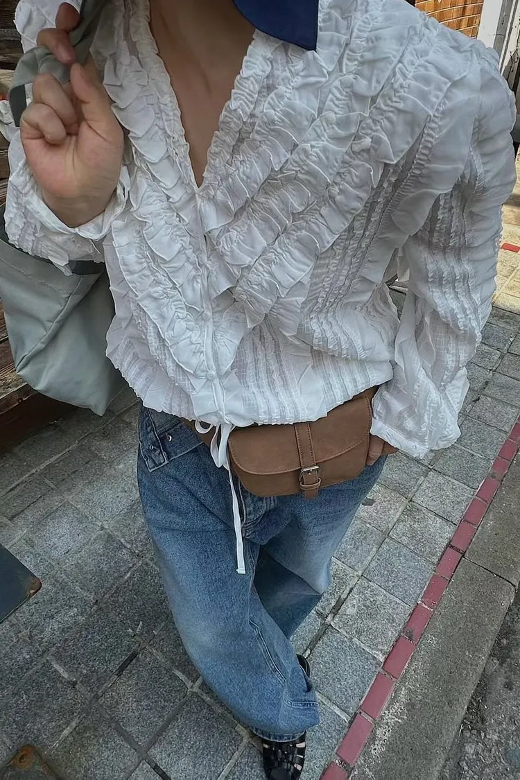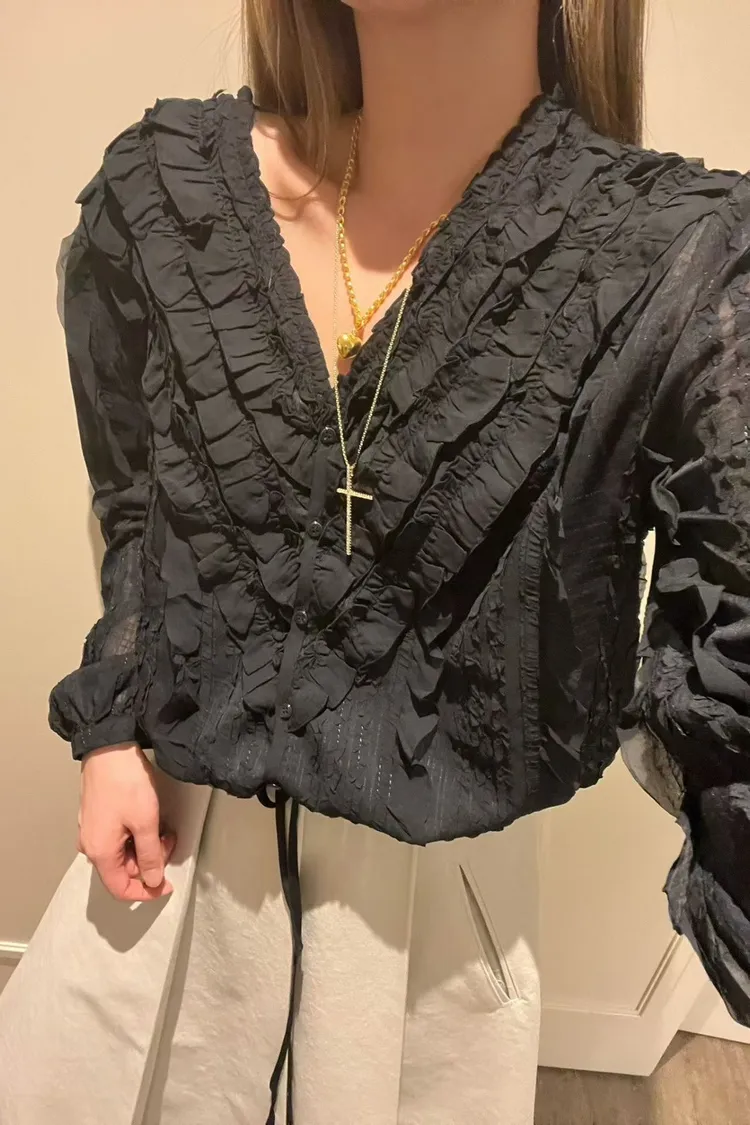 6-3前V領華麗荷葉雪紡上衣 603018