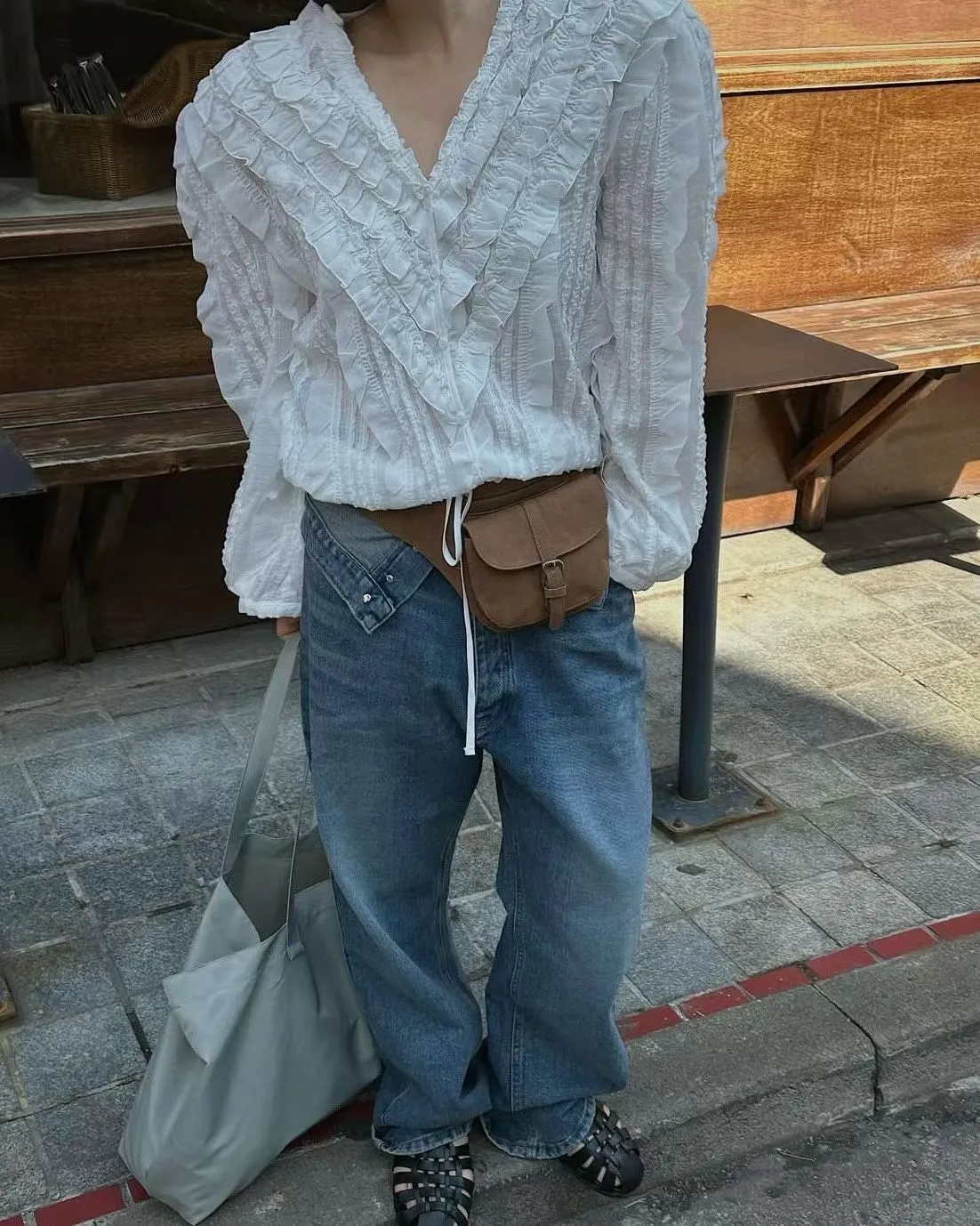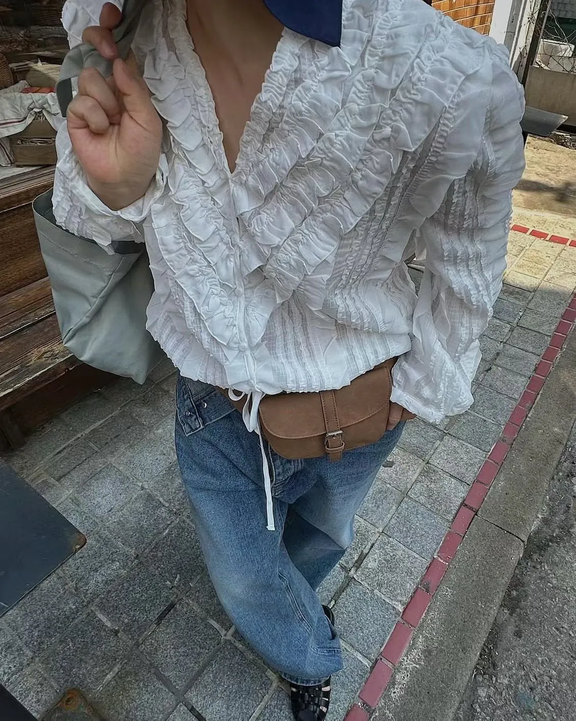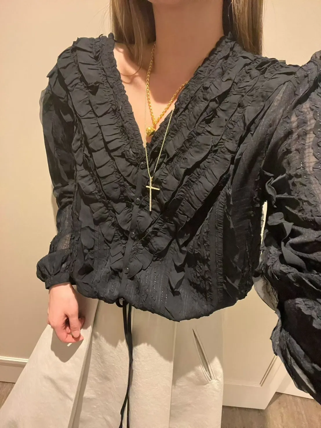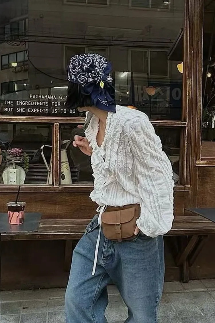 6-3前V領華麗荷葉雪紡上衣 603018