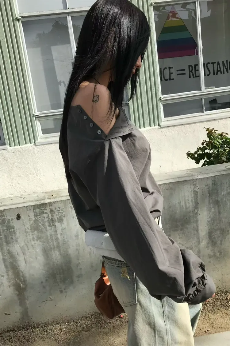 6-3側釦設計側抽繩設計上衣 603049