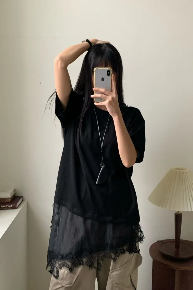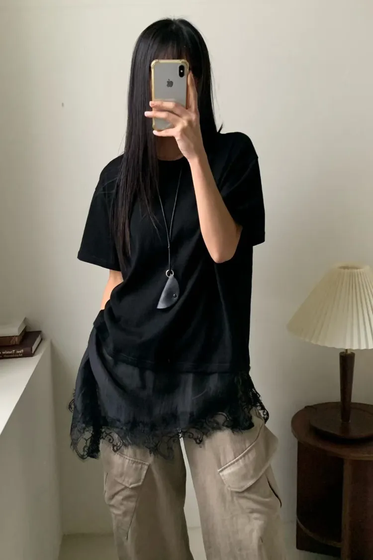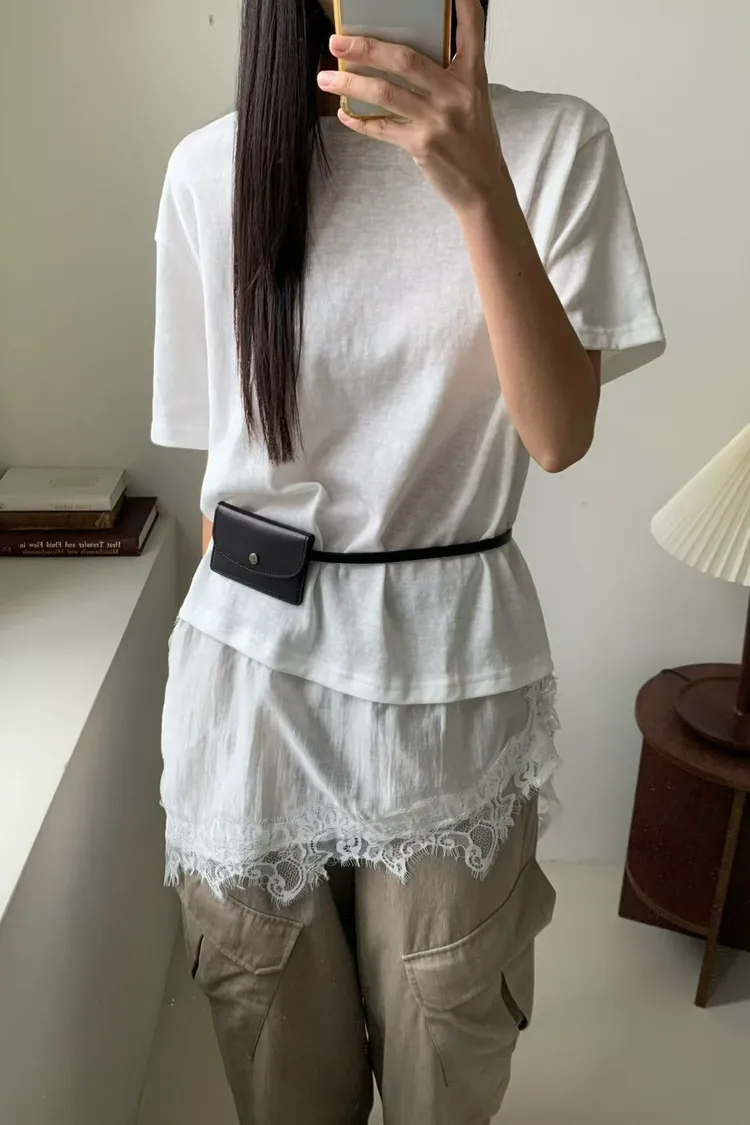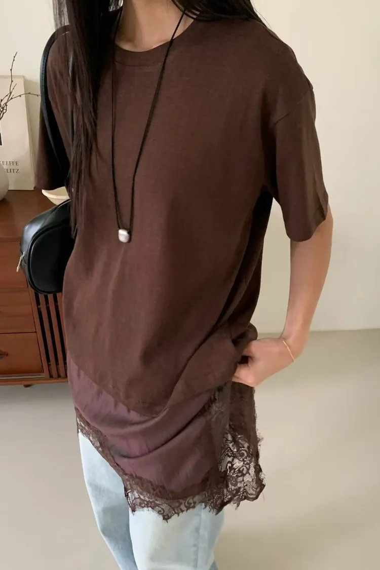 6-3下拼接蕾絲造型短袖棉衣 603050