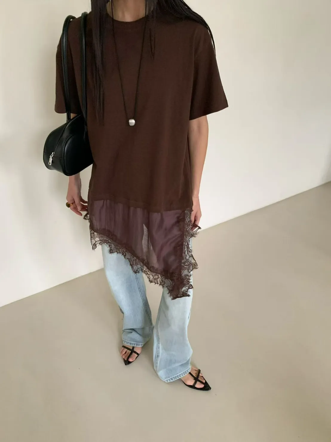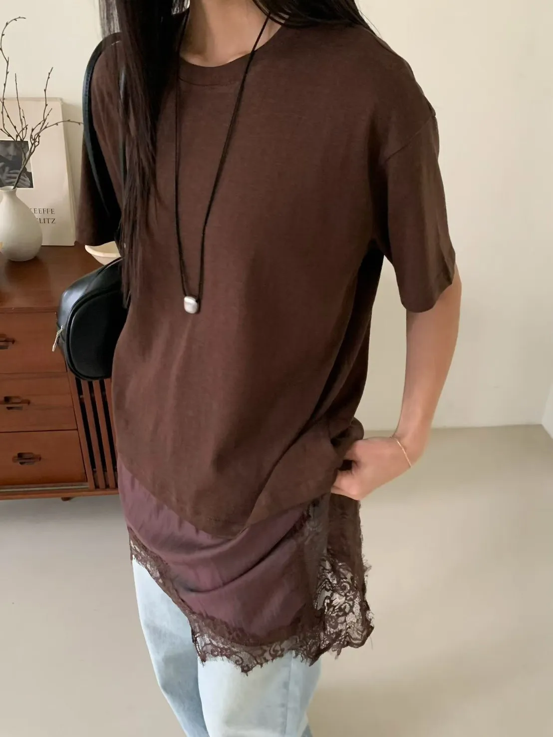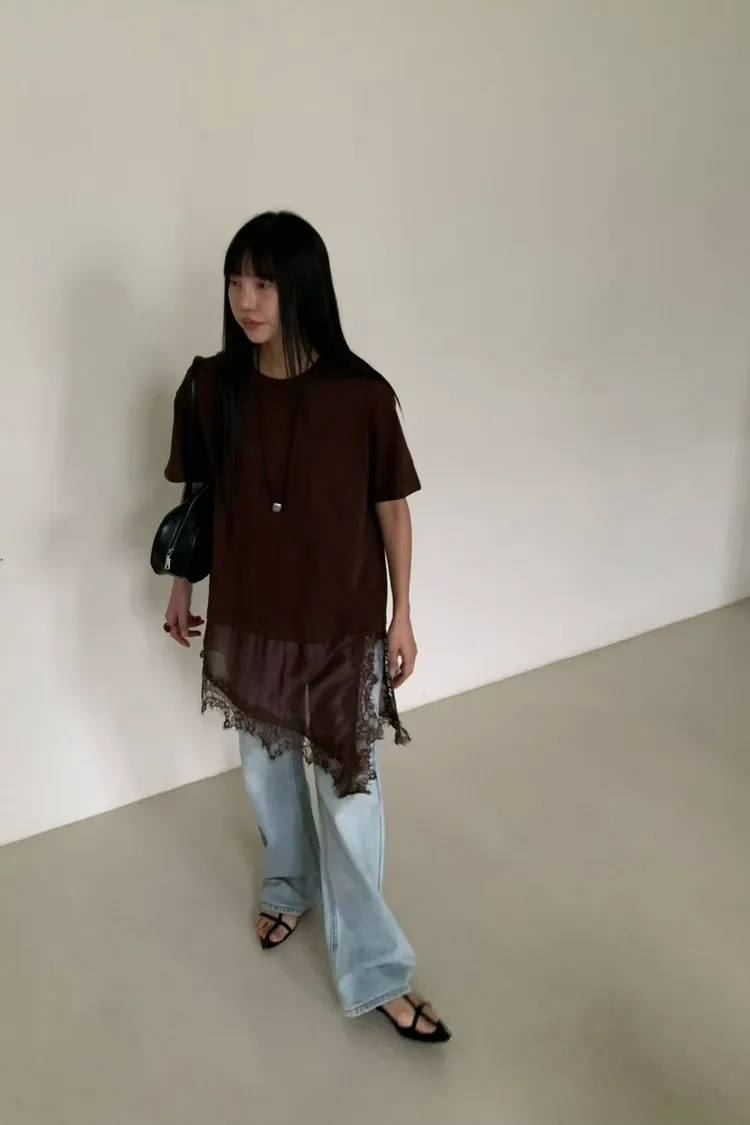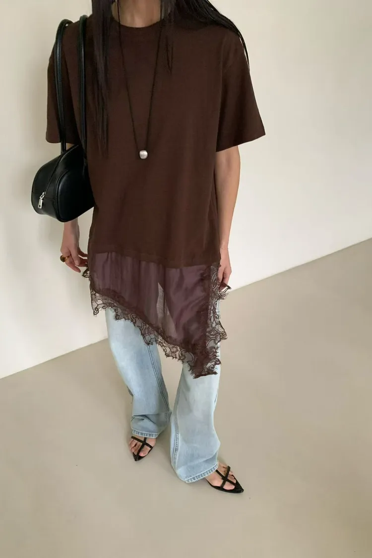 6-3下拼接蕾絲造型短袖棉衣 603050
