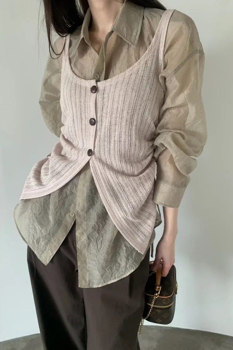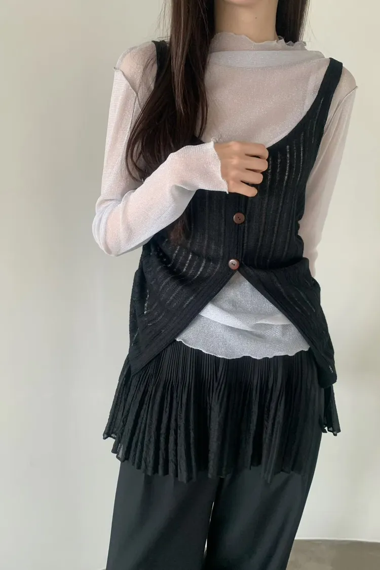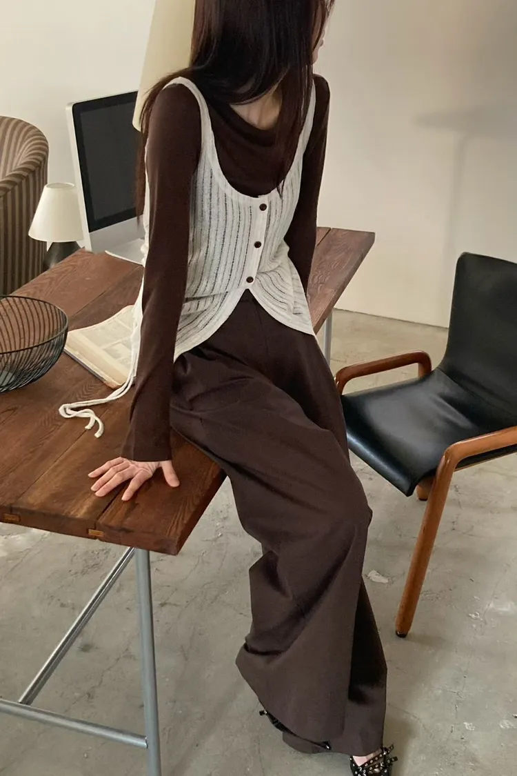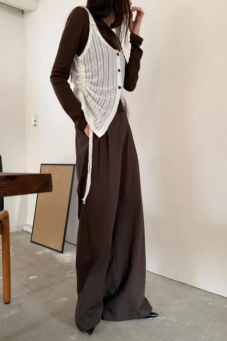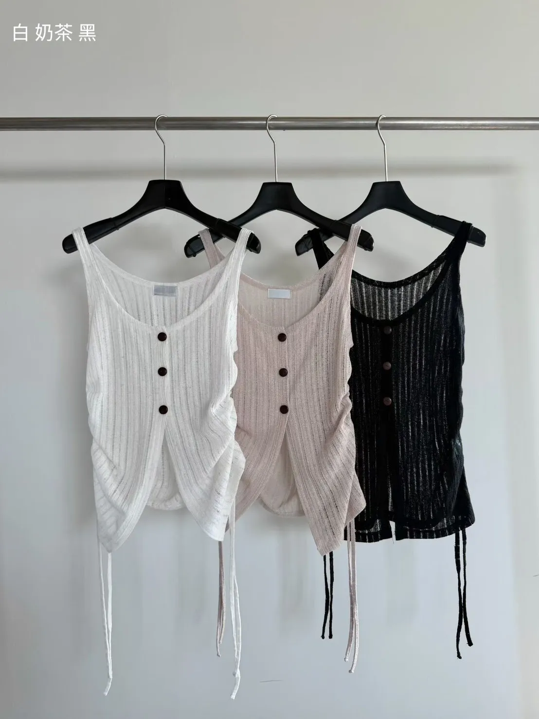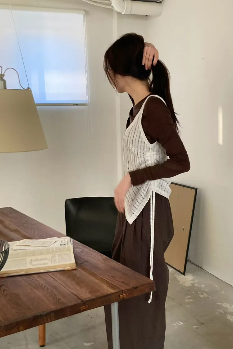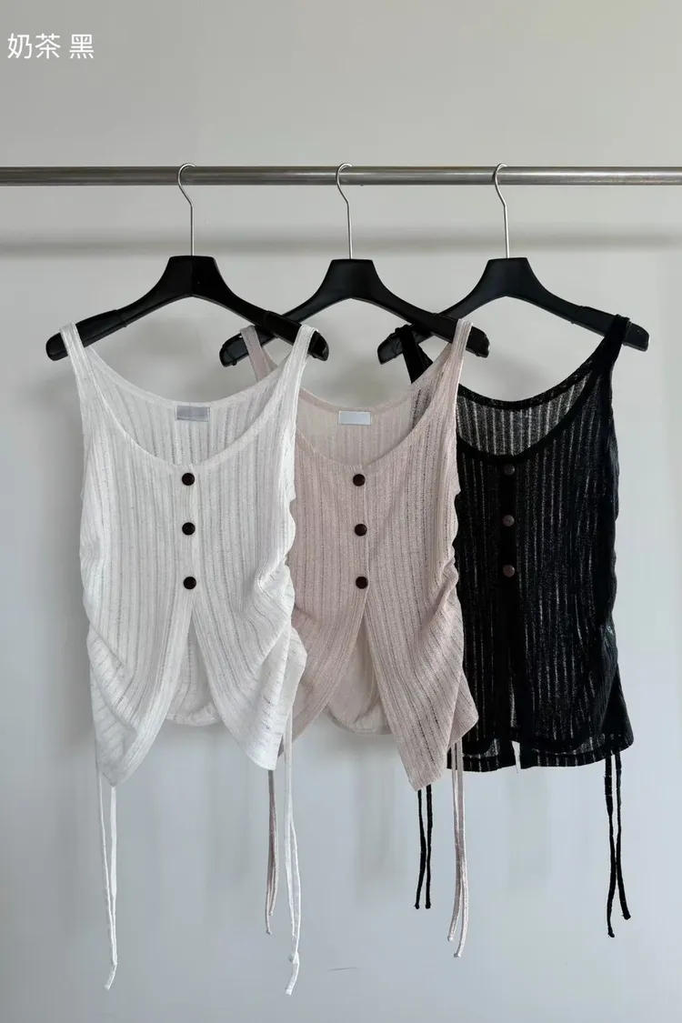 6-3兩側抽繩木紋釦背心 603052