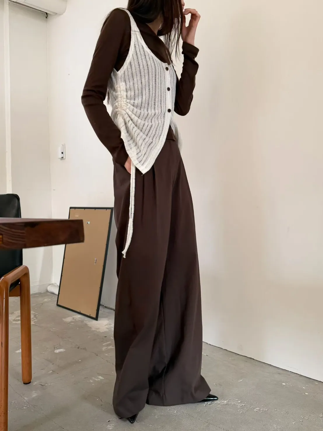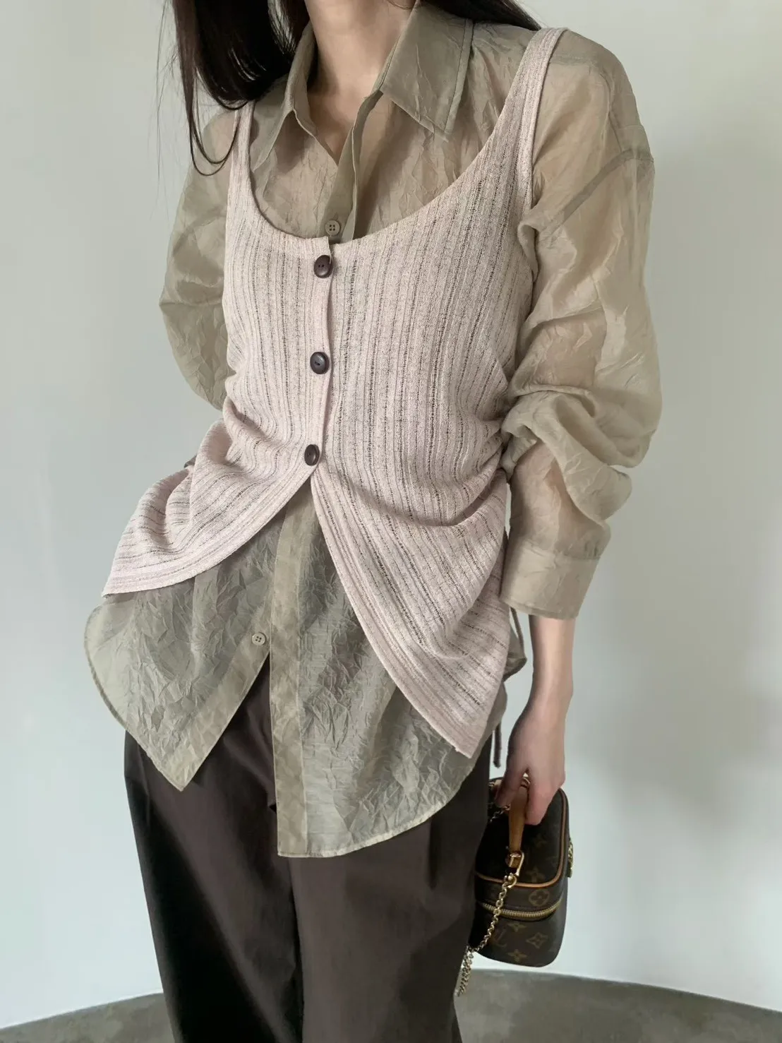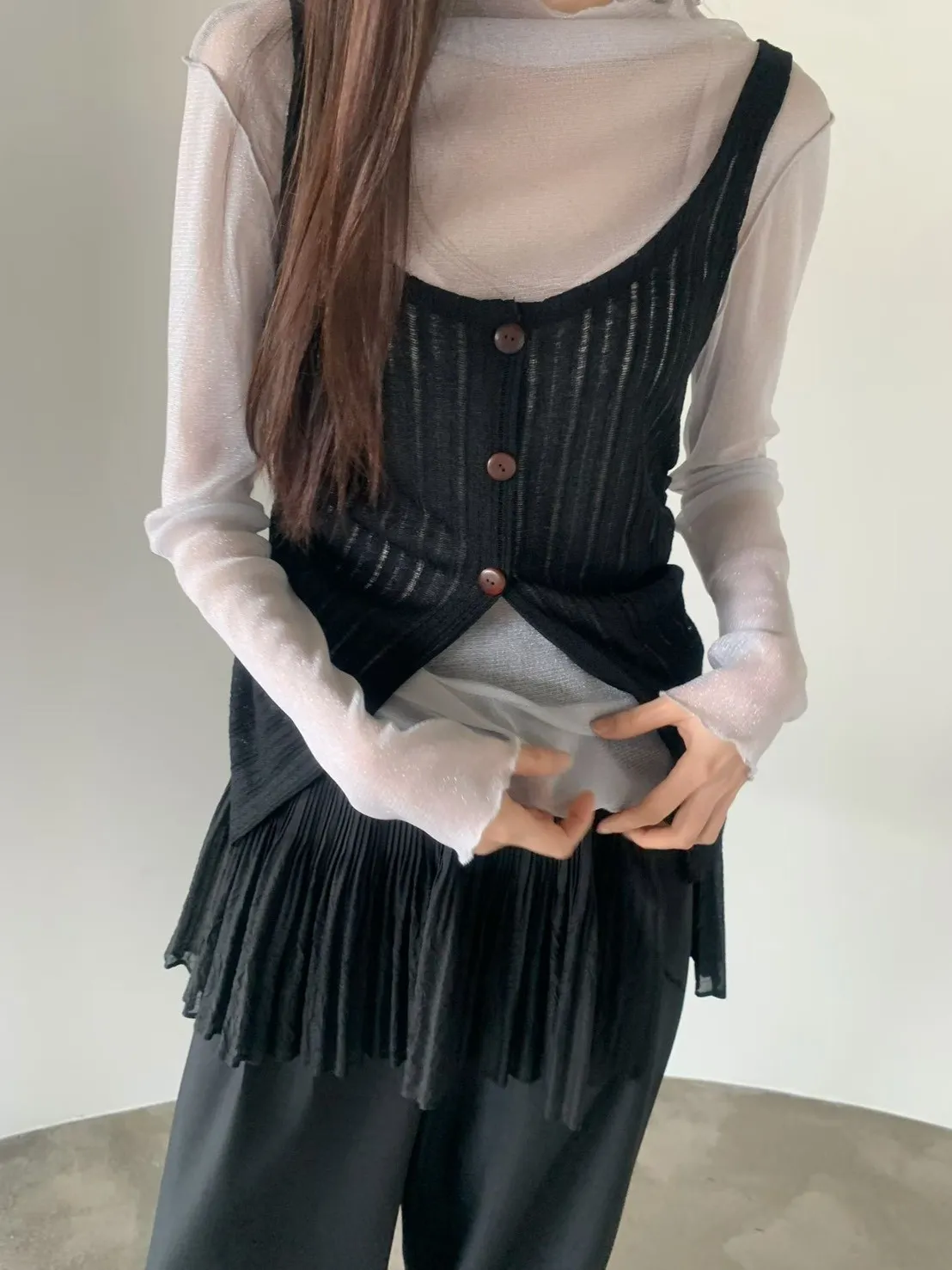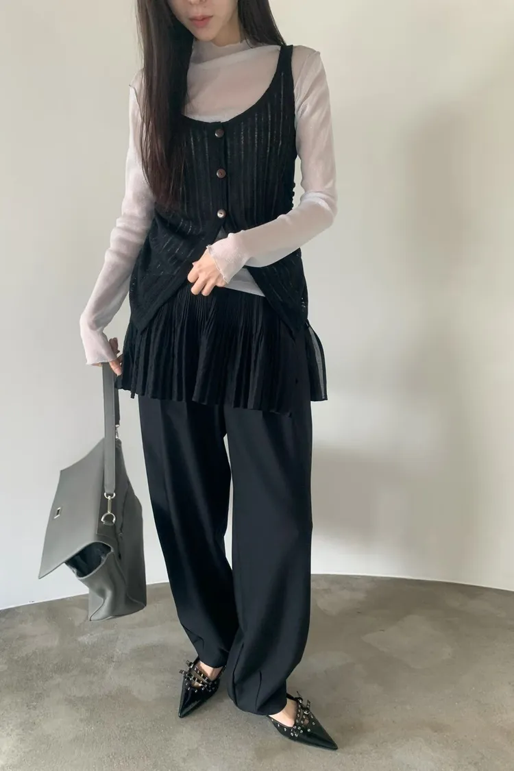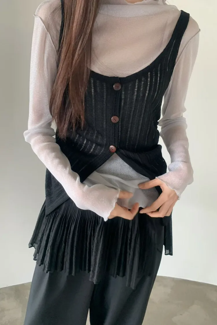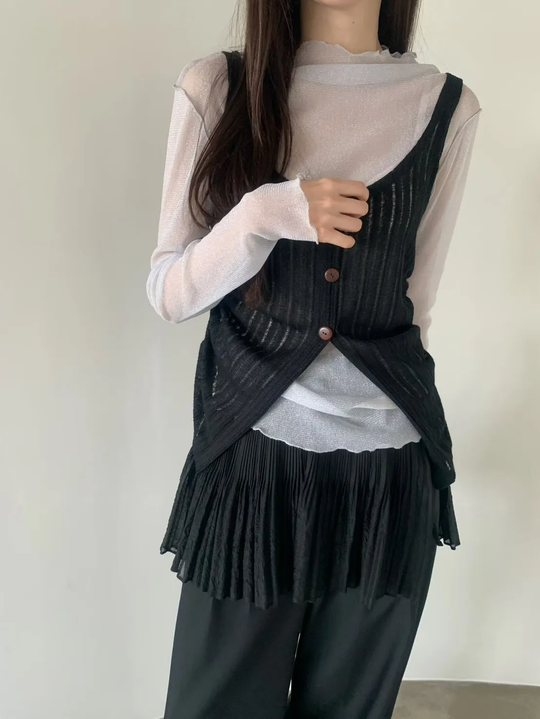 6-3兩側抽繩木紋釦背心 603052