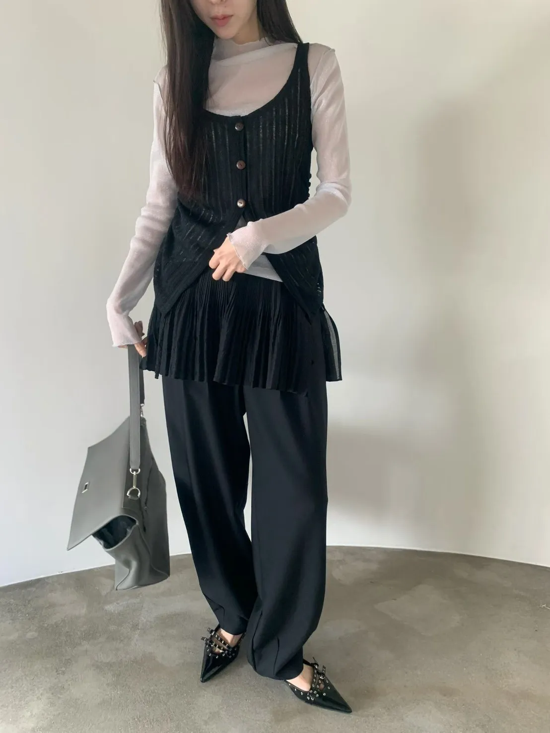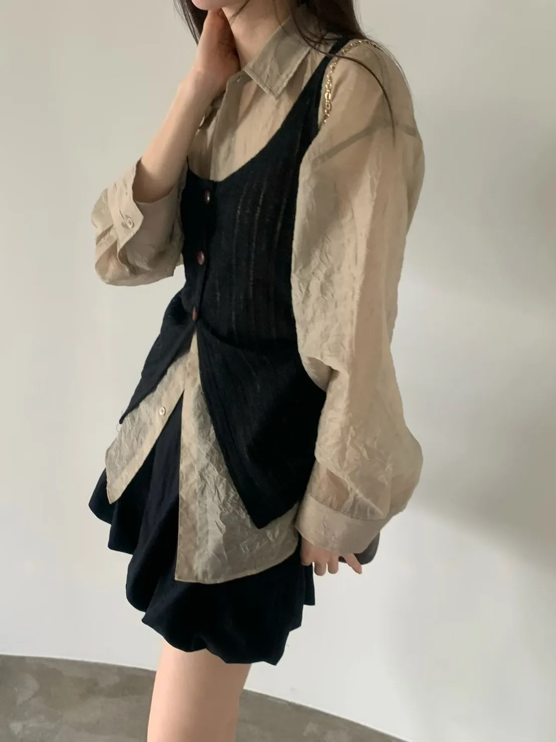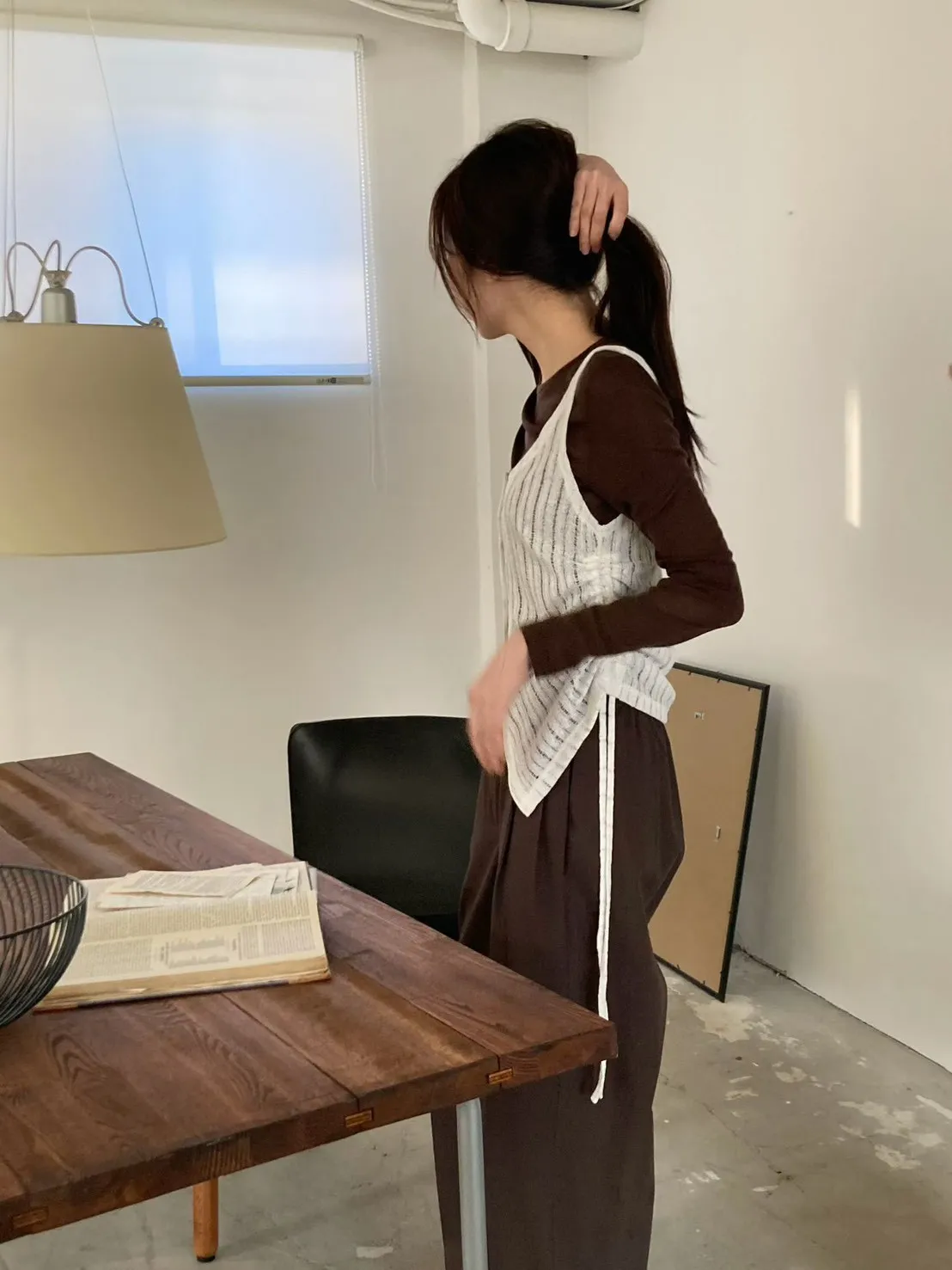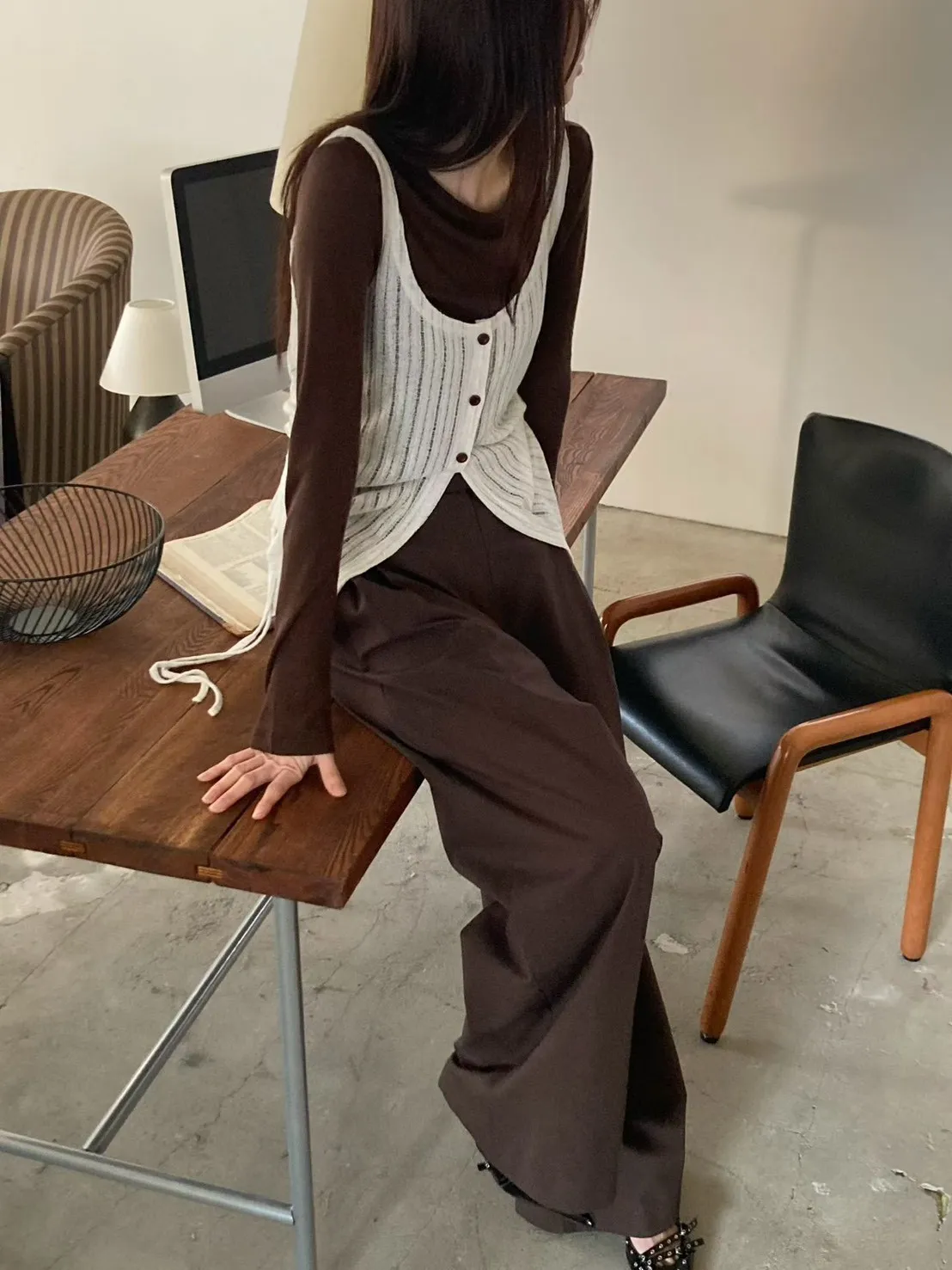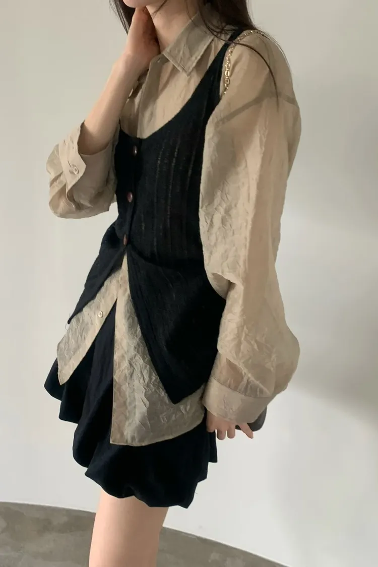 6-3兩側抽繩木紋釦背心 603052