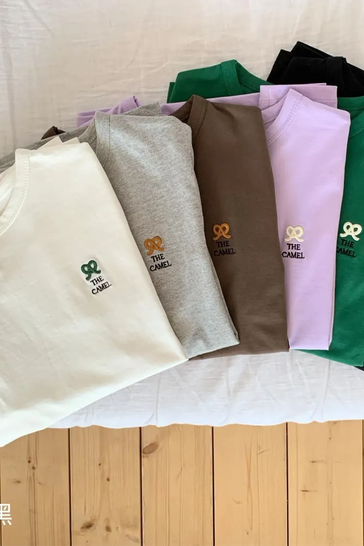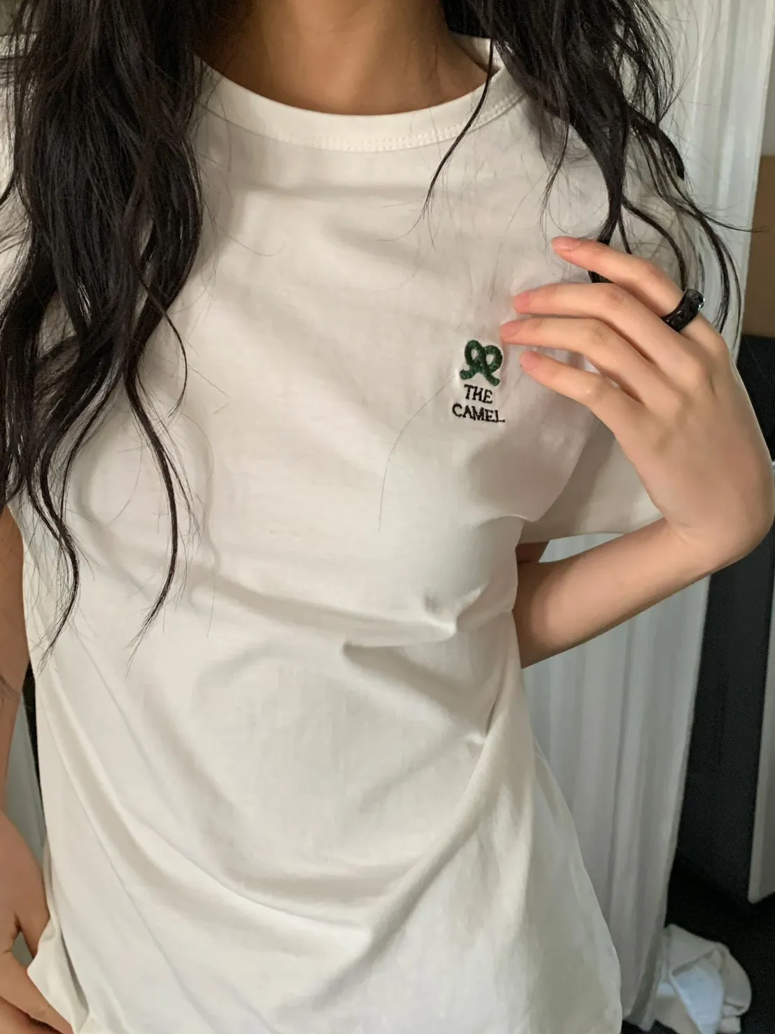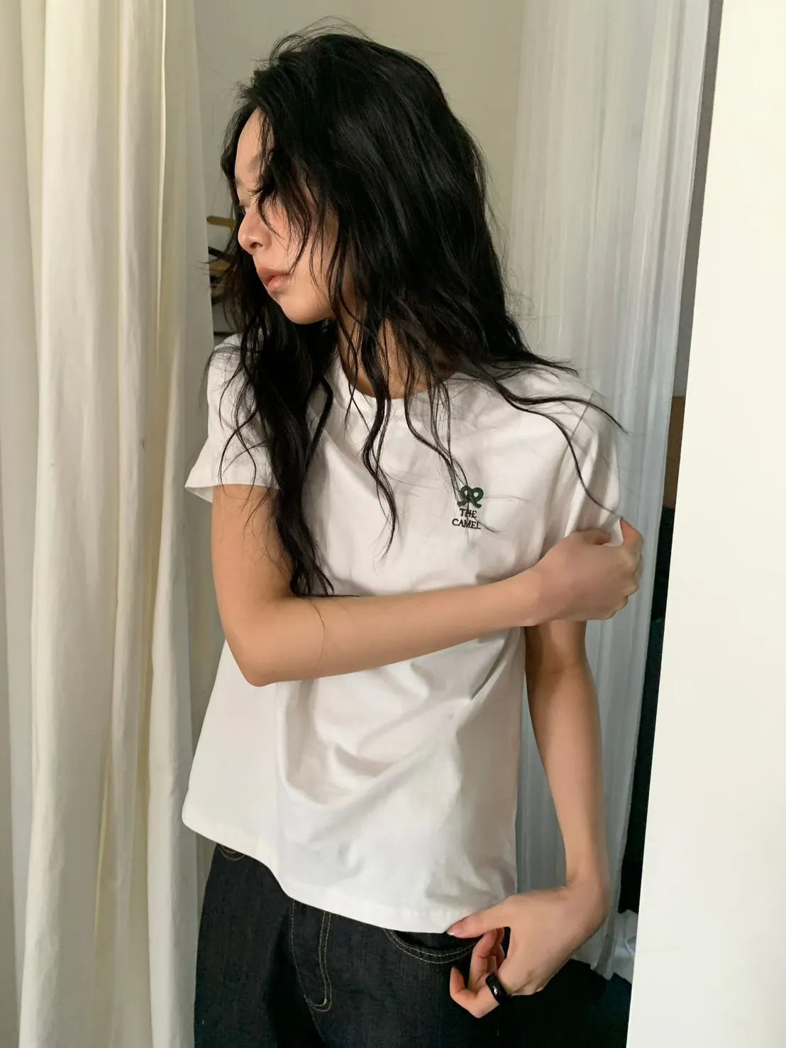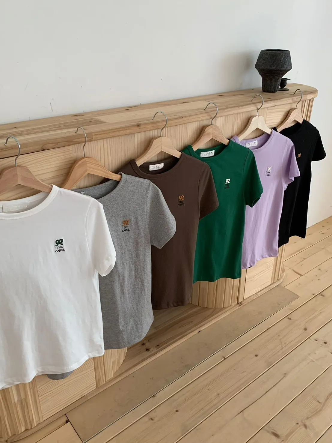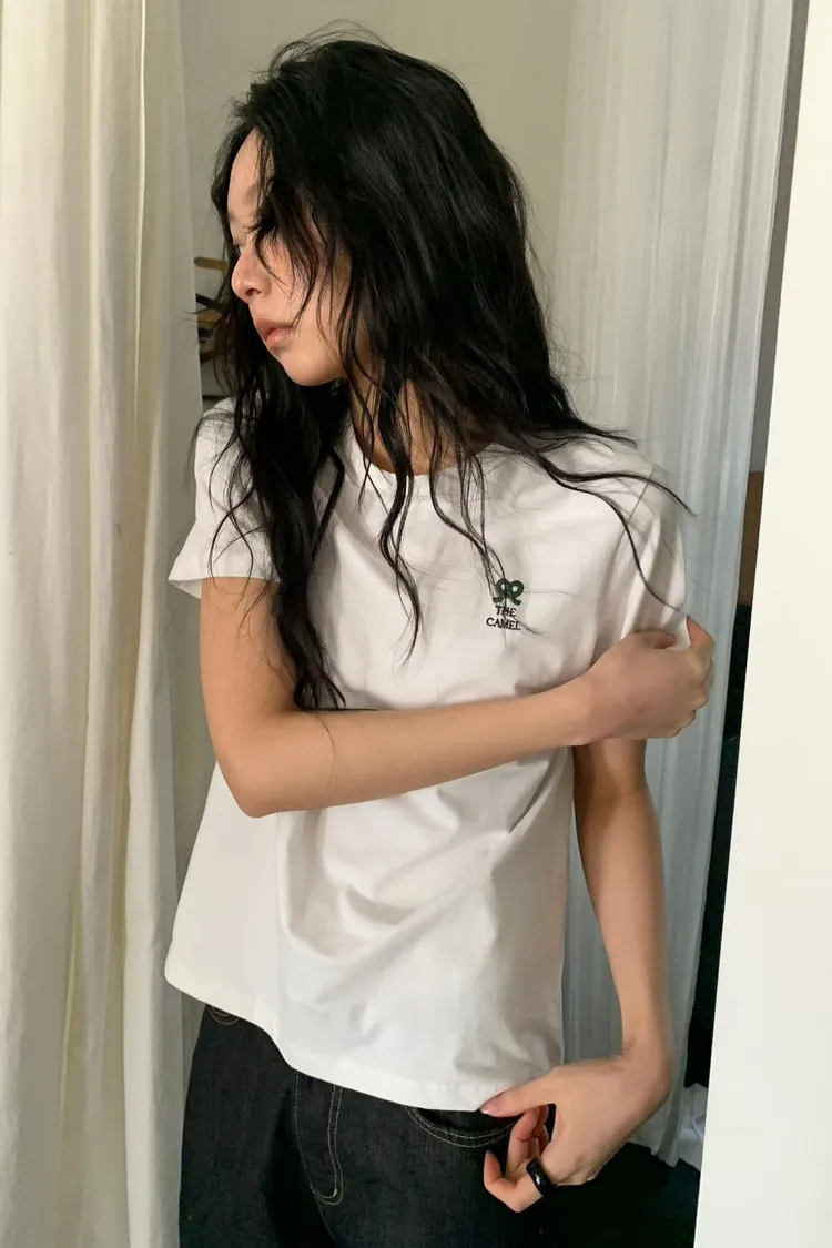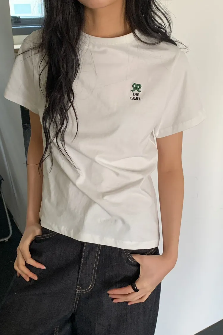 6-3蝴蝶餅品牌刺繡短版棉T 603058