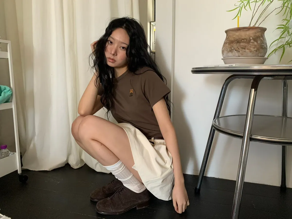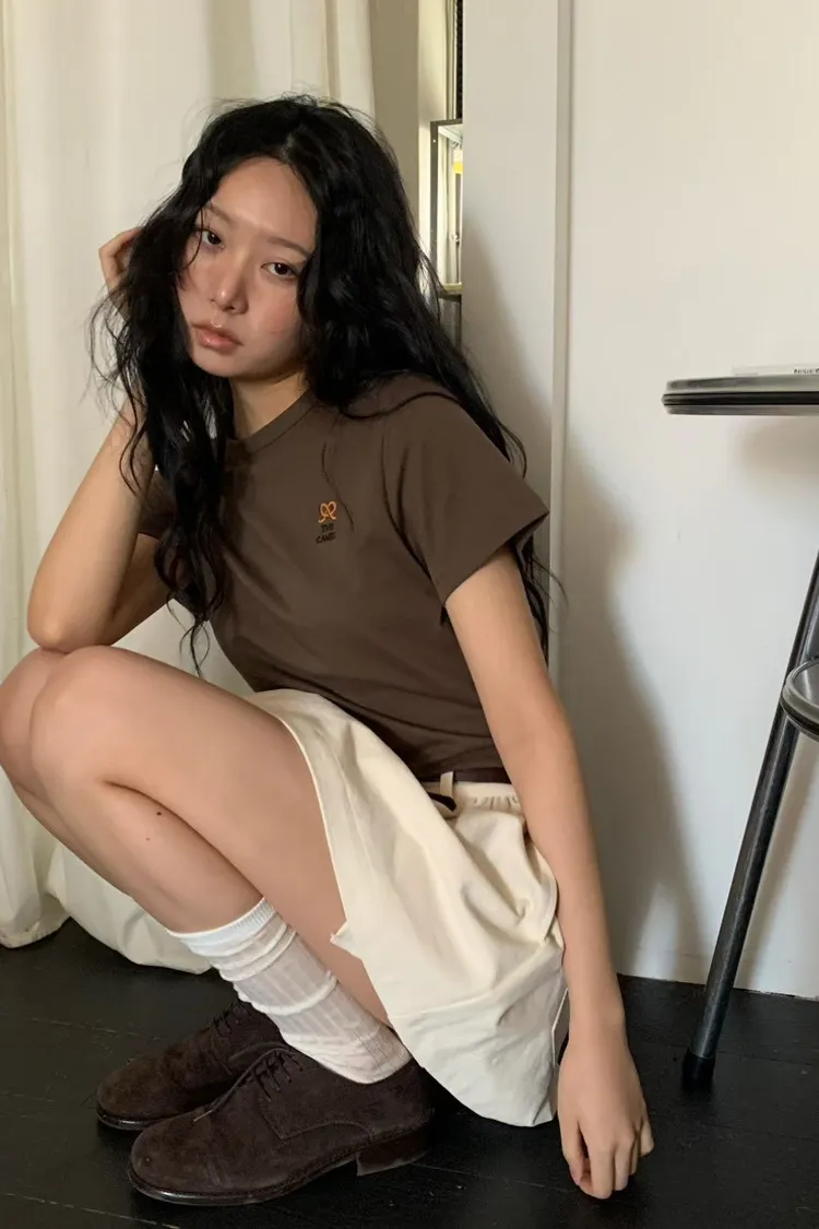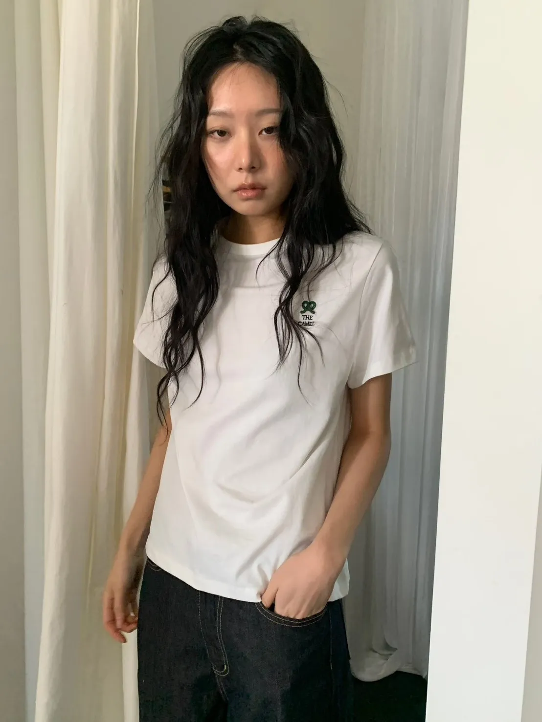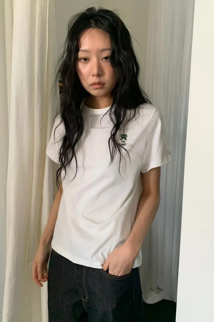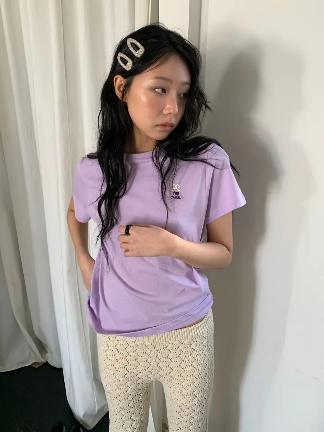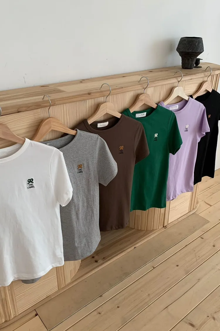 6-3蝴蝶餅品牌刺繡短版棉T 603058