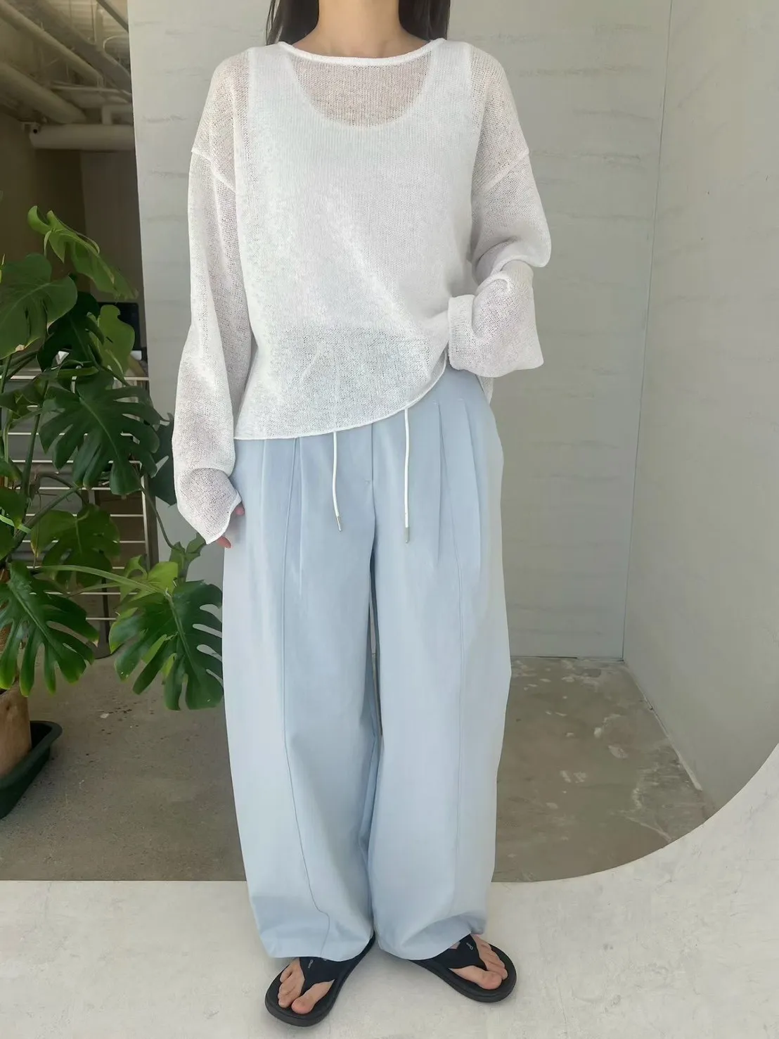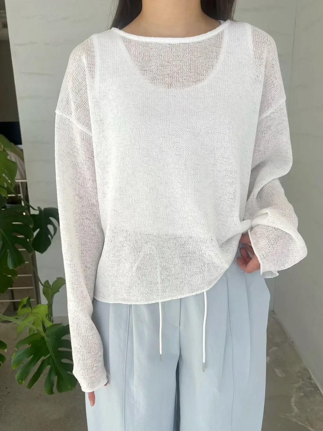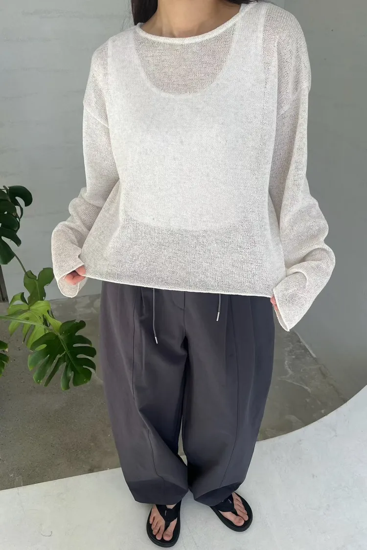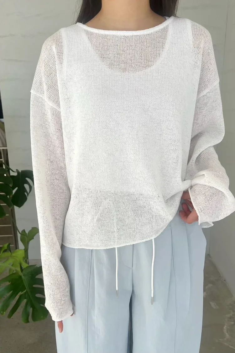 6-3清爽亞麻混麻透膚長袖罩衫 #嬌小歐膩 603065