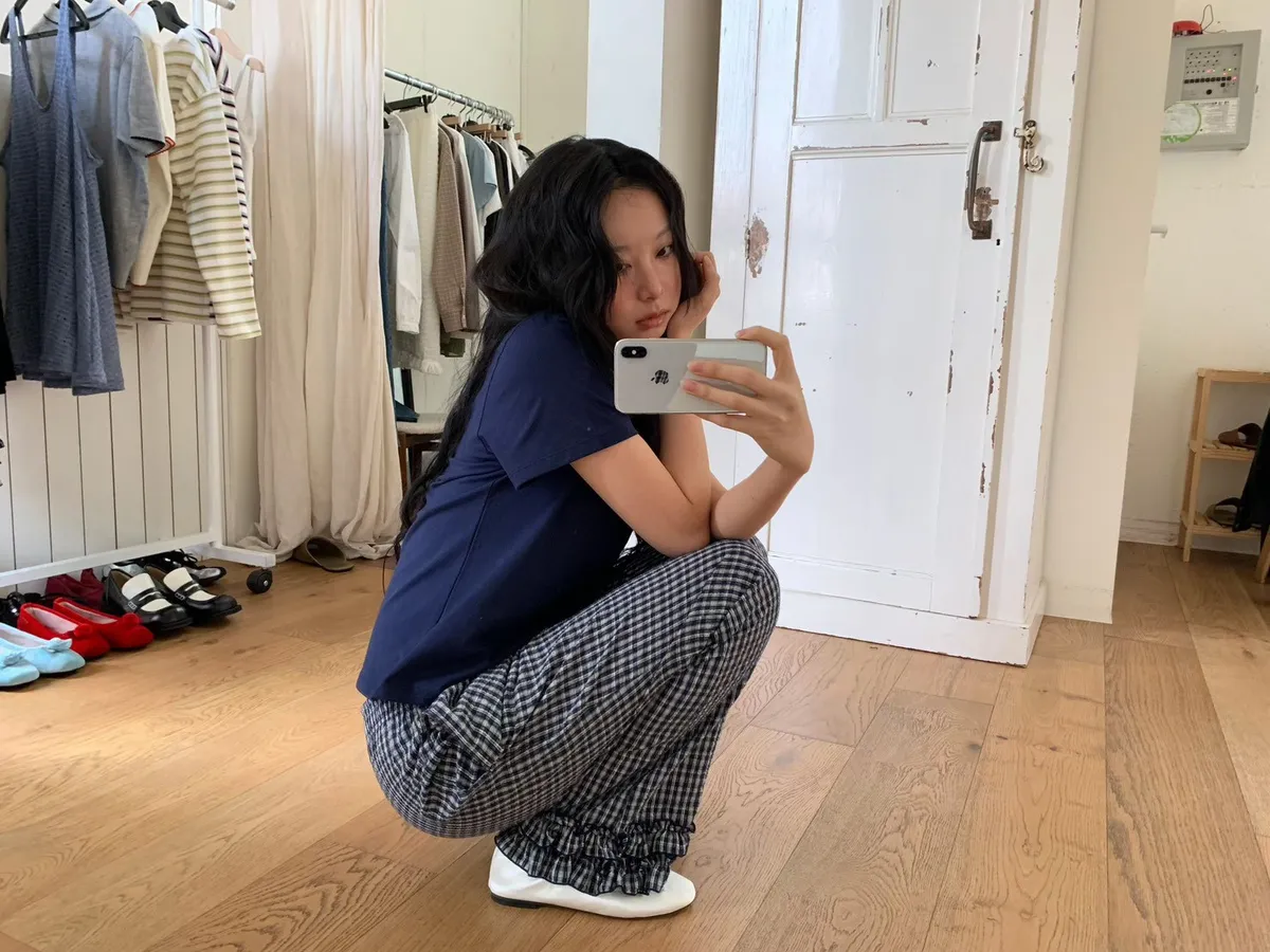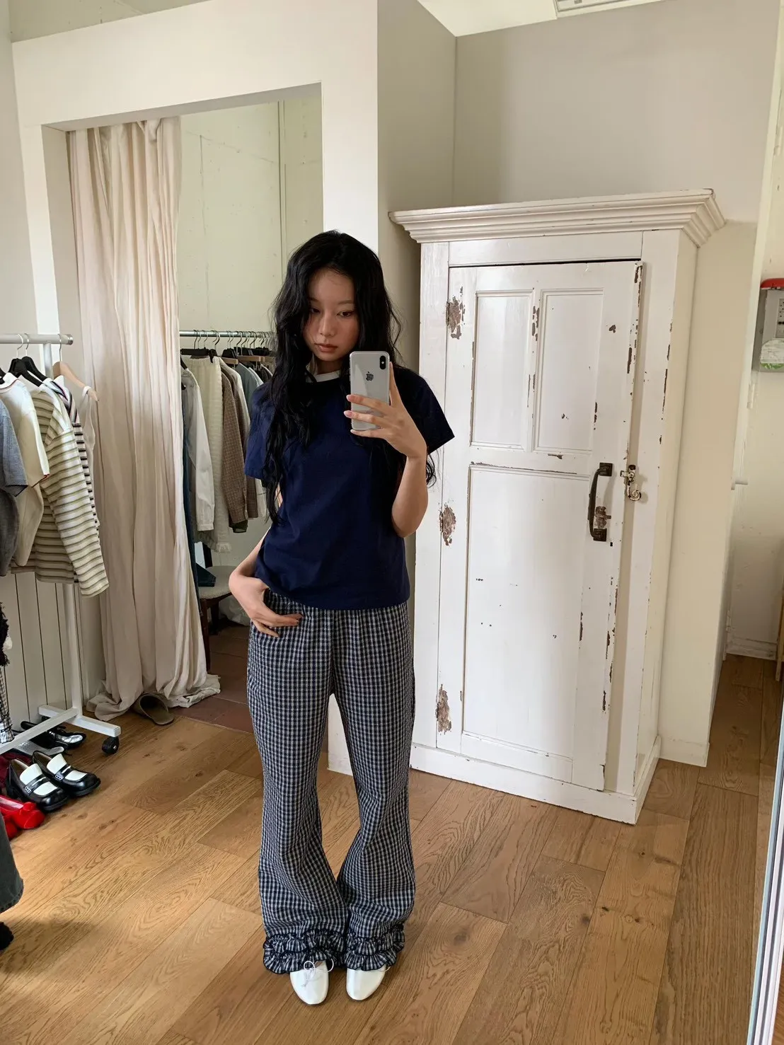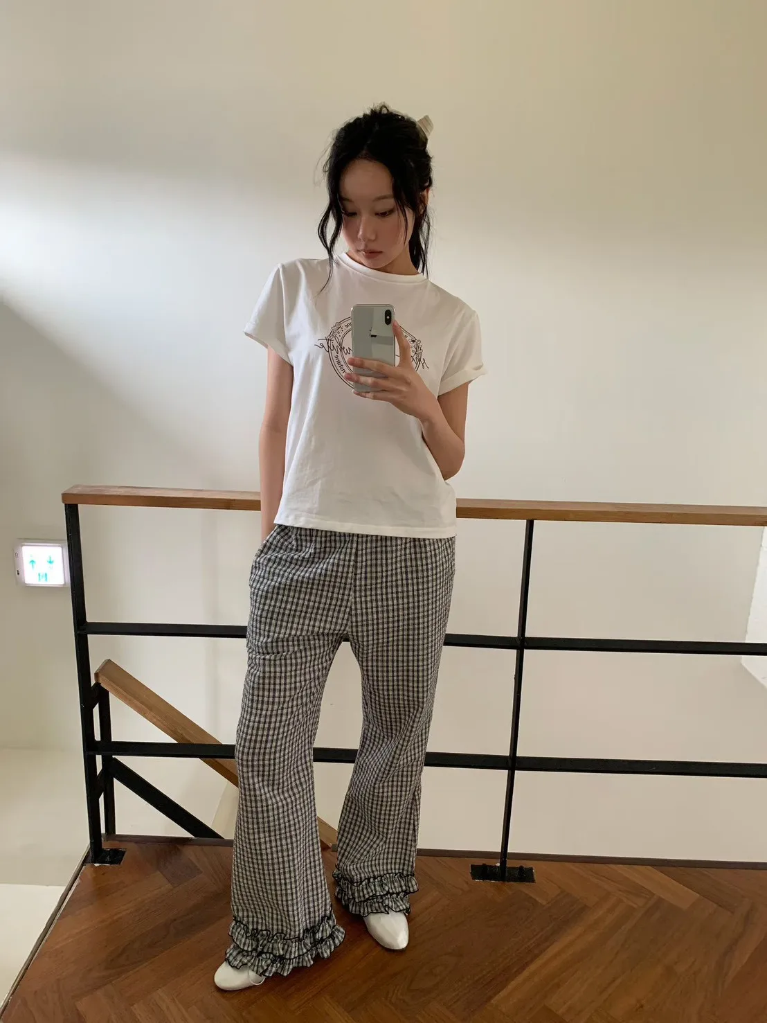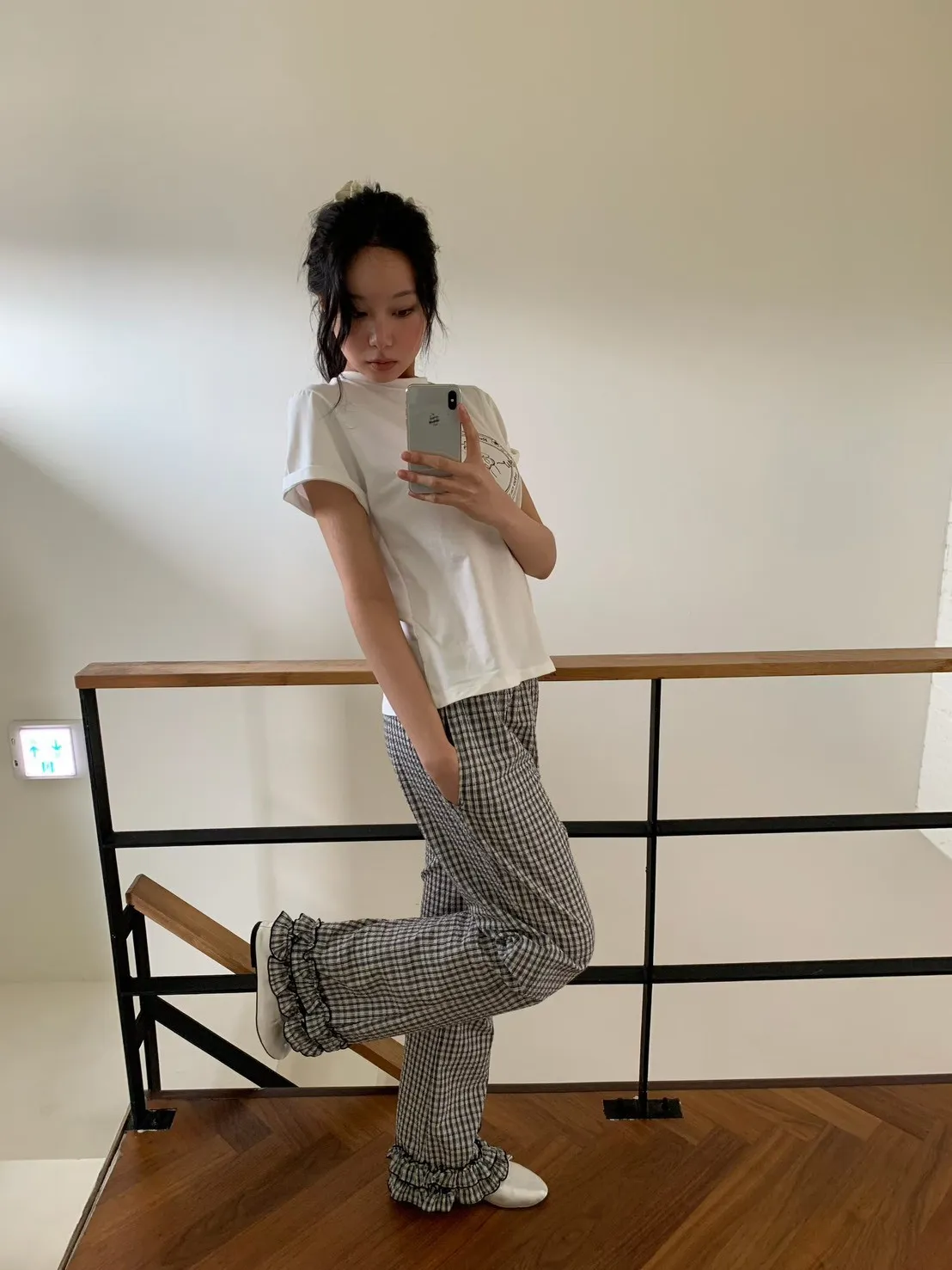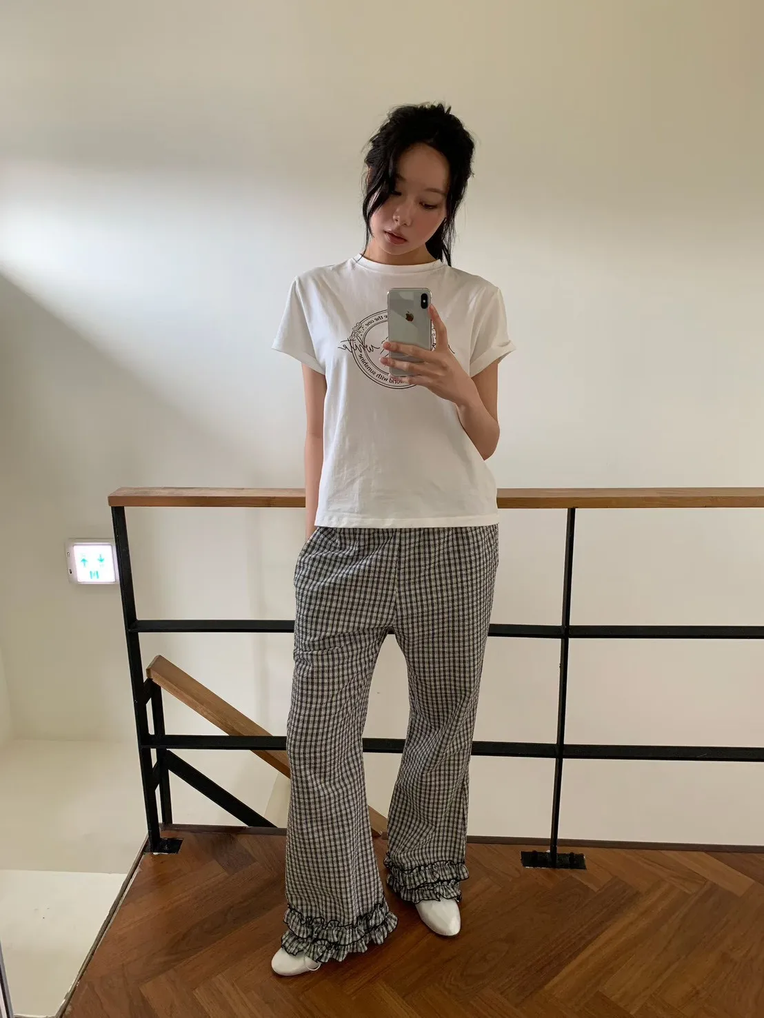 6-3褲管荷葉滾邊泡泡紗小格長褲 603077