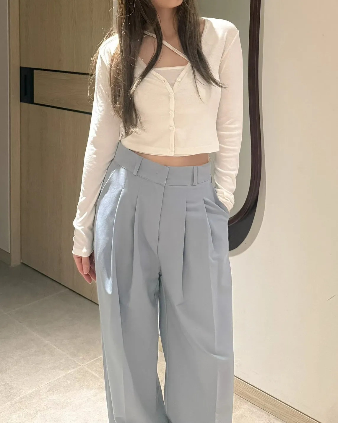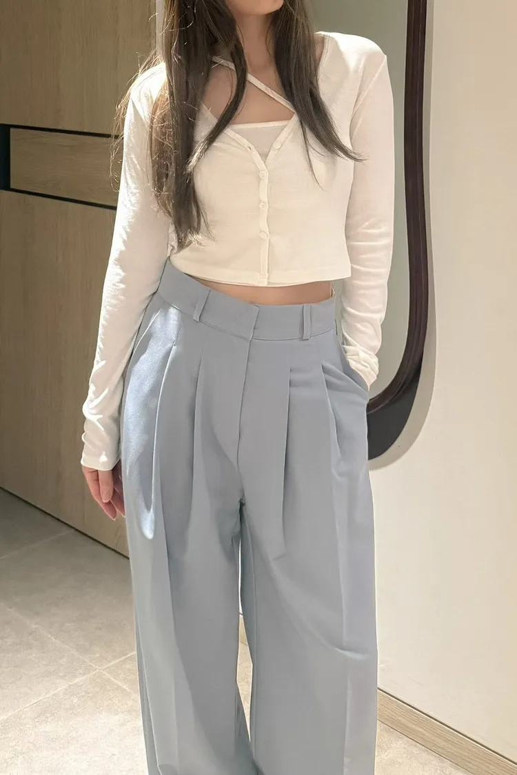 6-3前打褶直筒西裝褲 603097